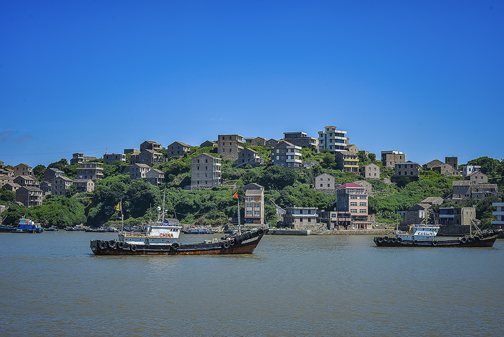 隔海相望的石頭房傍山而建,高低錯落有致,成為碼頭一景。