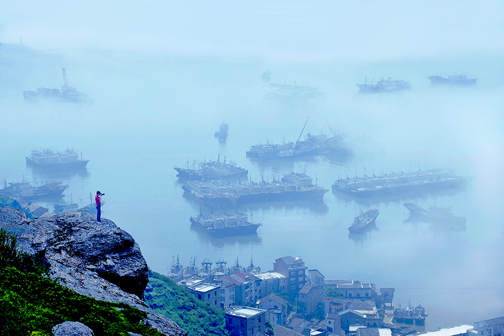 作品介紹: 霧起漁港,停泊在石塘避風(fēng)港內(nèi)的數(shù)百條船在輕紗薄霧中忽隱忽現(xiàn),展現(xiàn)獨特的風(fēng)光美景。