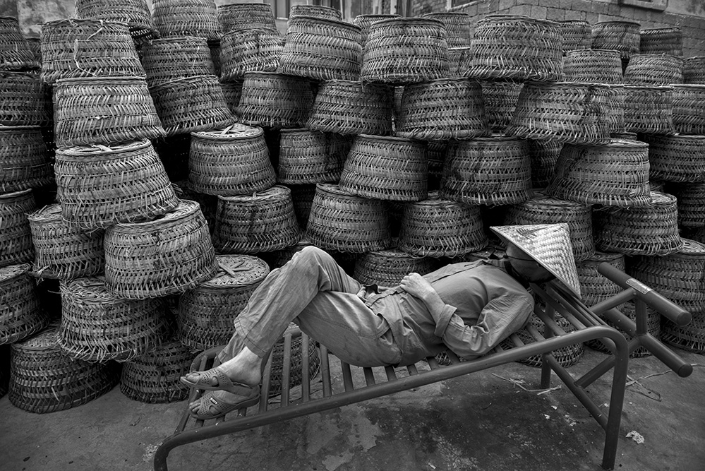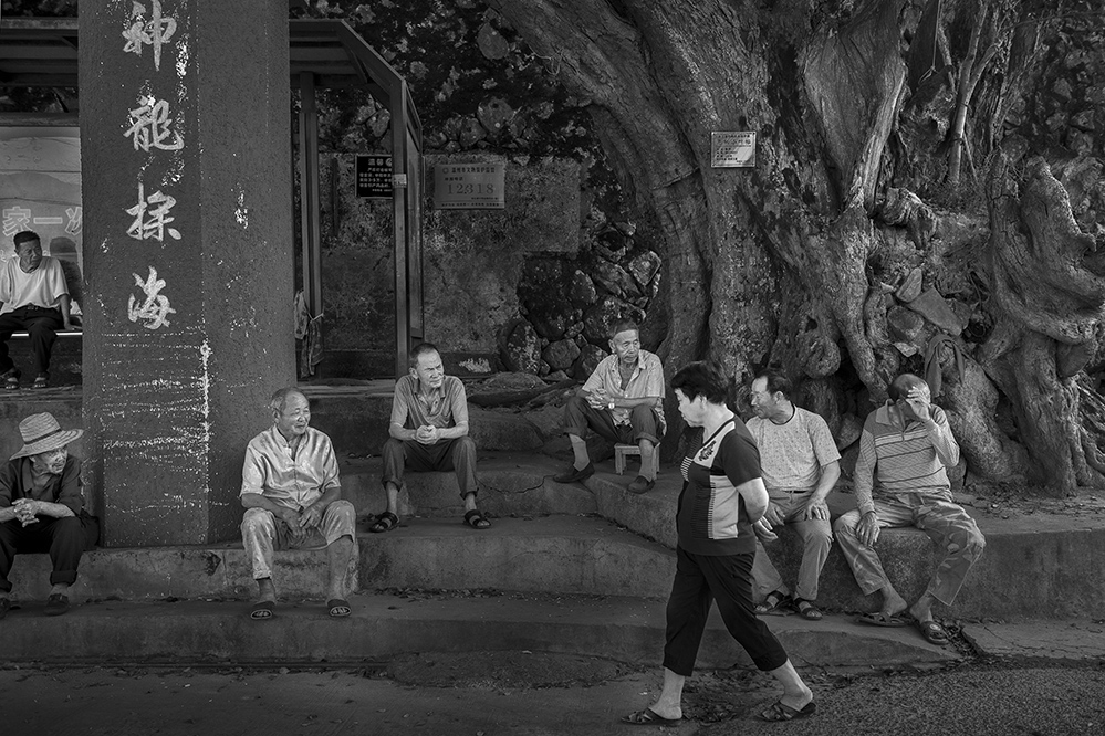 漁民在被譽為“神龍?zhí)胶!钡那旯艠湎录{涼,這里是他們的信息中轉(zhuǎn)站。2016.10,蒼南