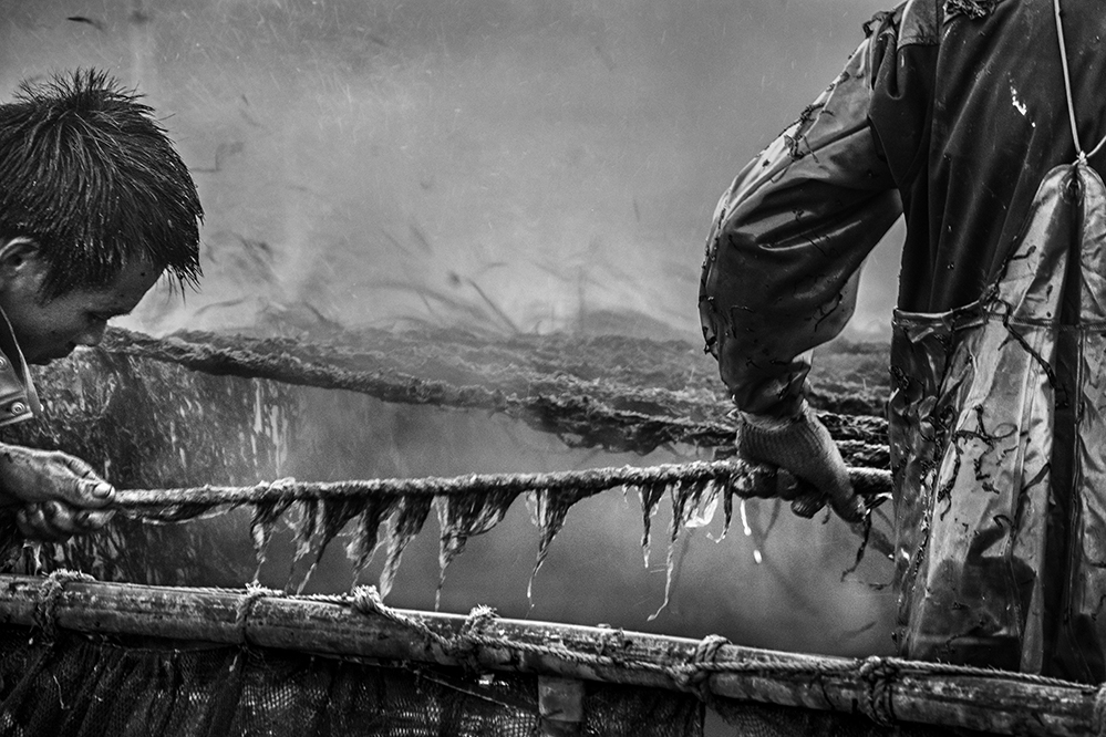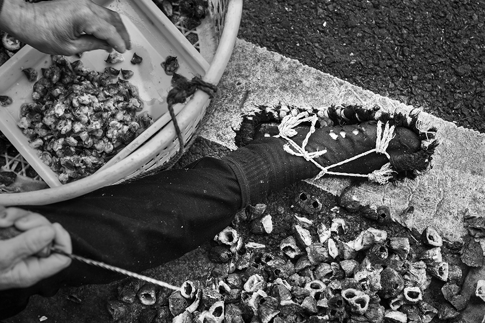 浙江蒼南有著168公里的海岸線,沿線生活著一群靠海吃海的“討海人”。討海,也就是從海中覓食,向大海討生計。討海的人特別辛苦,父輩們再苦再累都要把自己的孩子培養(yǎng)成才,期盼下一代可以逃脫大海的禁錮。 長期出海趕海是為了維持生計,漁民在大海中想找一處遮陽的地方都沒有,頂著酷日辛勤勞作;最可怕的還是陰晴不定的風暴的沖擊,排山倒海的海浪拍打著船身,生命隨著洶涌的波濤搖擺不定。可不管大風大浪、日曬雨淋,他們都要出海,不然就沒有收入。他們攀爬到巨大的礁石上,滑且危險,稍有不慎便會跌落下去。面對時時刻刻潛伏在周遭的危險,他們只能寄托于祈求上天保佑家人平安。