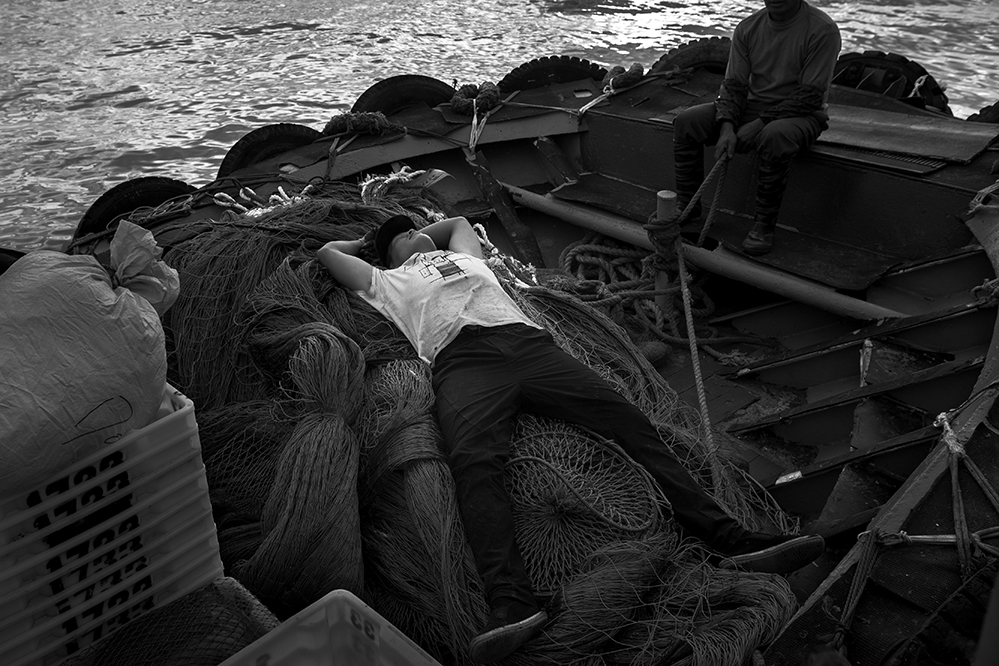 天蒙蒙亮漁民就開始在海上忙碌,天黑才回家,一天十多個小時的暴曬,體力消耗非常大。2014.12,蒼南