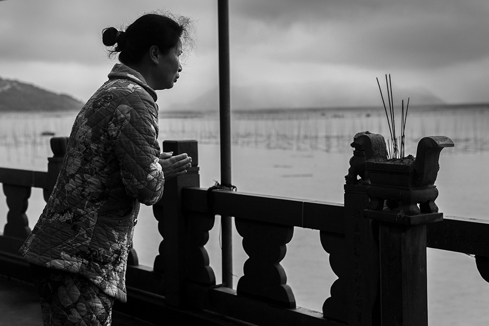 婦女在媽祖廟祈求海上勞作的家人平安歸來。2021.3,蒼南