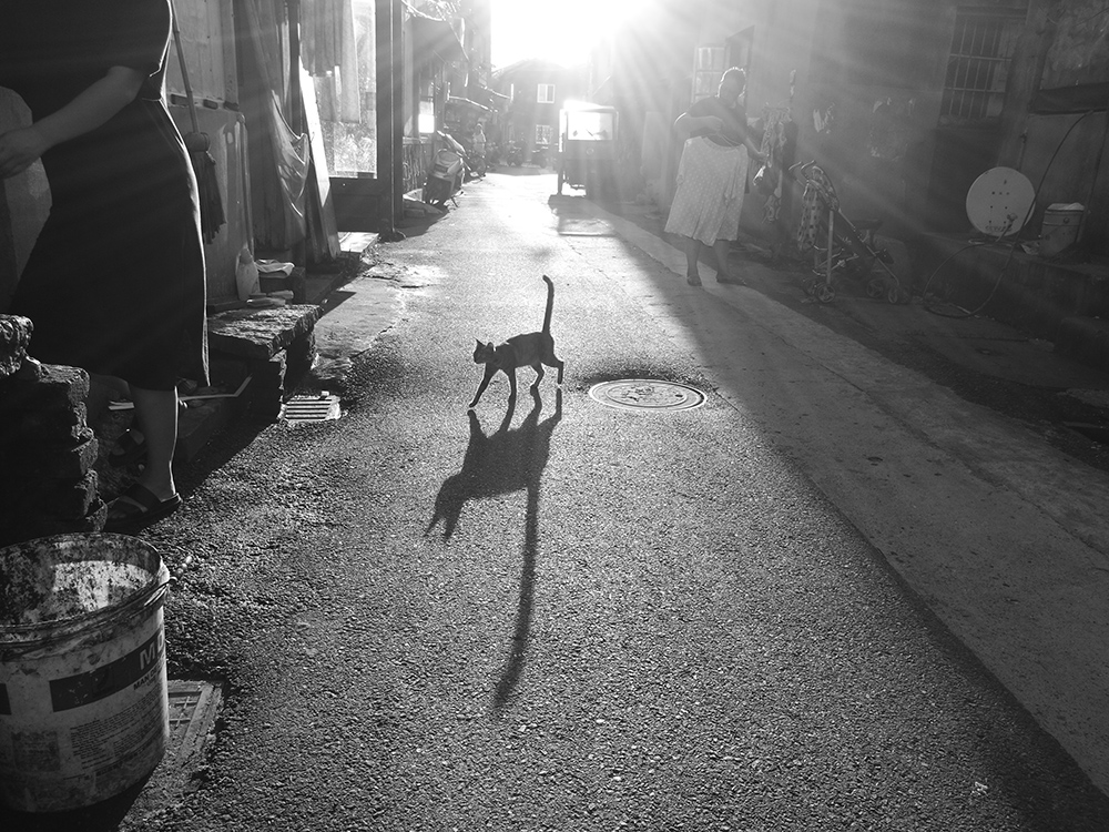 (組照十)2016年9月,衙門巷,路中央突然竄出一只貓,光影中顯得十分優(yōu)雅。