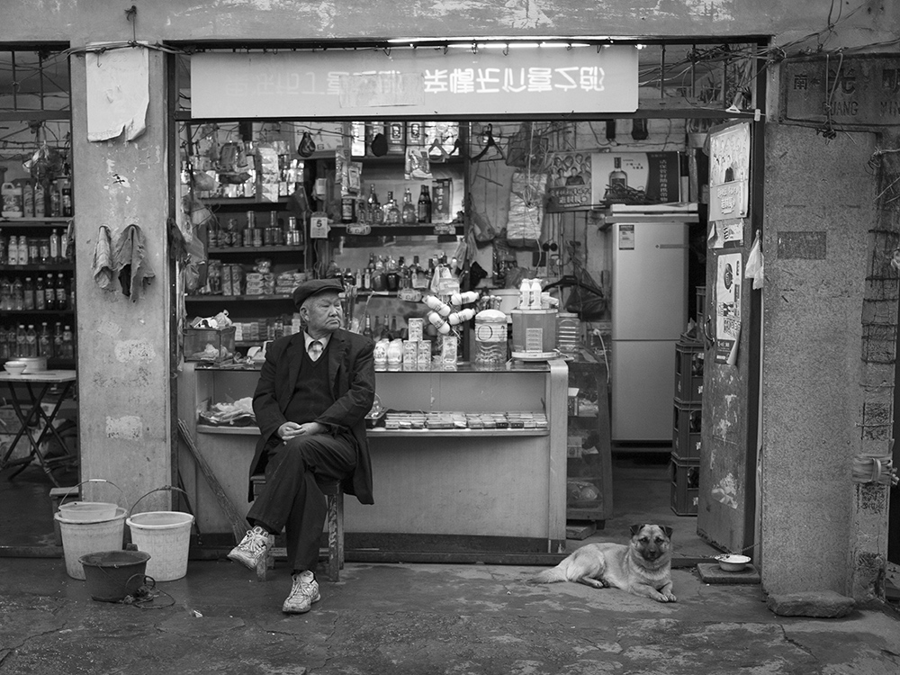 (組照六)2013年2月,光明路的小店,傍晚時分,主人和它的狗靜靜地守著門口。