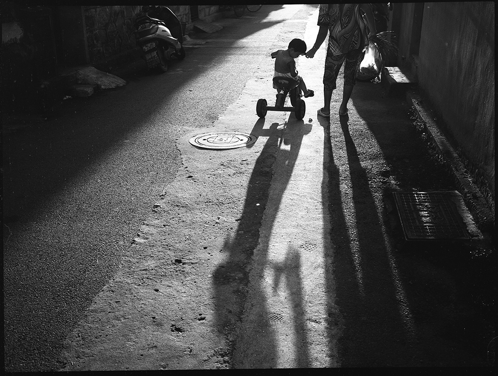 (組照七)2016年9月,衙門巷,夕陽把小孩的身影拉得老長老長。