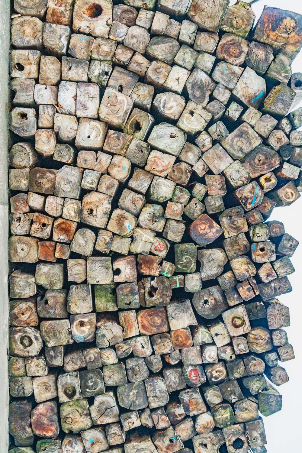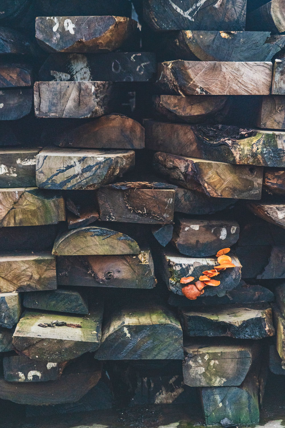 相片于浙江東陽花園村木材堆場。 隨著夏日的來臨,空氣開始有些悶熱起來,這讓我想起了曾經一個濕熱的日子,闖進了一片鋸木板堆場,記錄了一幀幀有趣的關于木材的畫面,從原木到加工了一般的木材,形態各異,堆放不同,猶如少年學畫時恣意在紙張上涂下的樣子,還有“蘑菇”在雨后時光了從木材縫隙中迸發出來。 這是我原本在探索大興安嶺等林區時希望獲得的場面, 但北國的森林已經被涵養起來,林區里的木材堆場已不復存在,而在紅木產業為支柱產業之一的南方小城浙江東陽,高經濟價值木材的集中堆放,讓我的鏡頭里擁有了這樣一片難得一見的場景。
