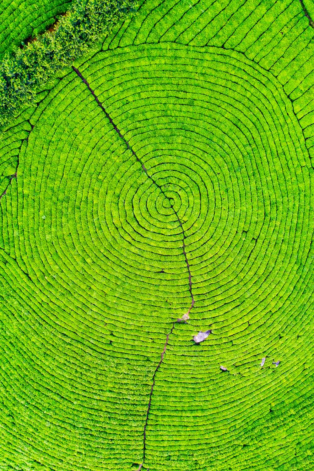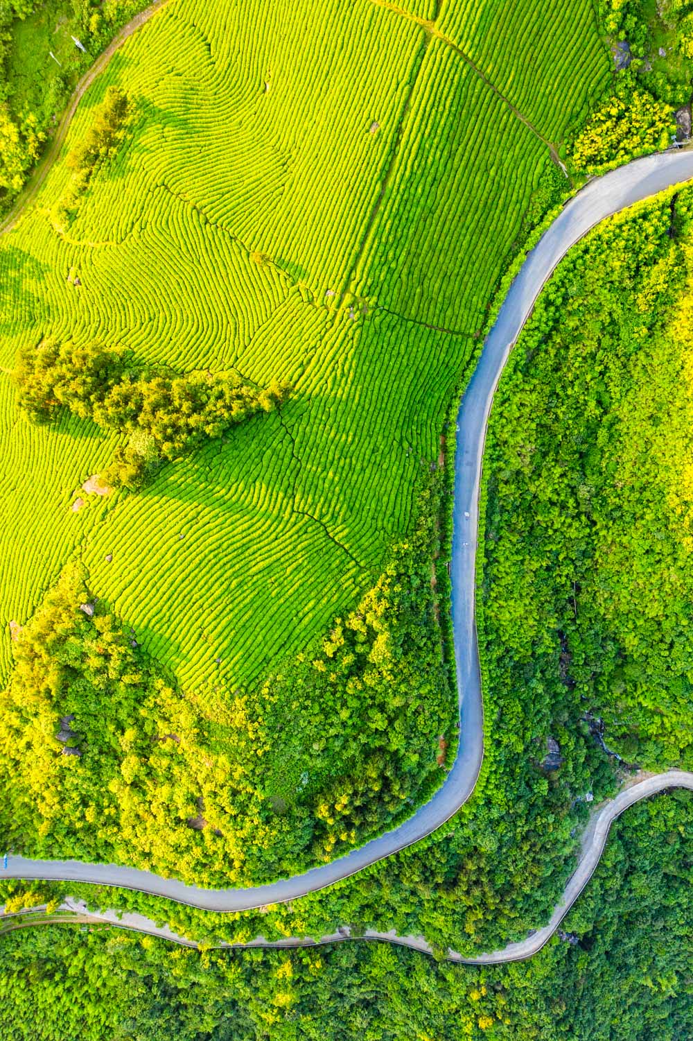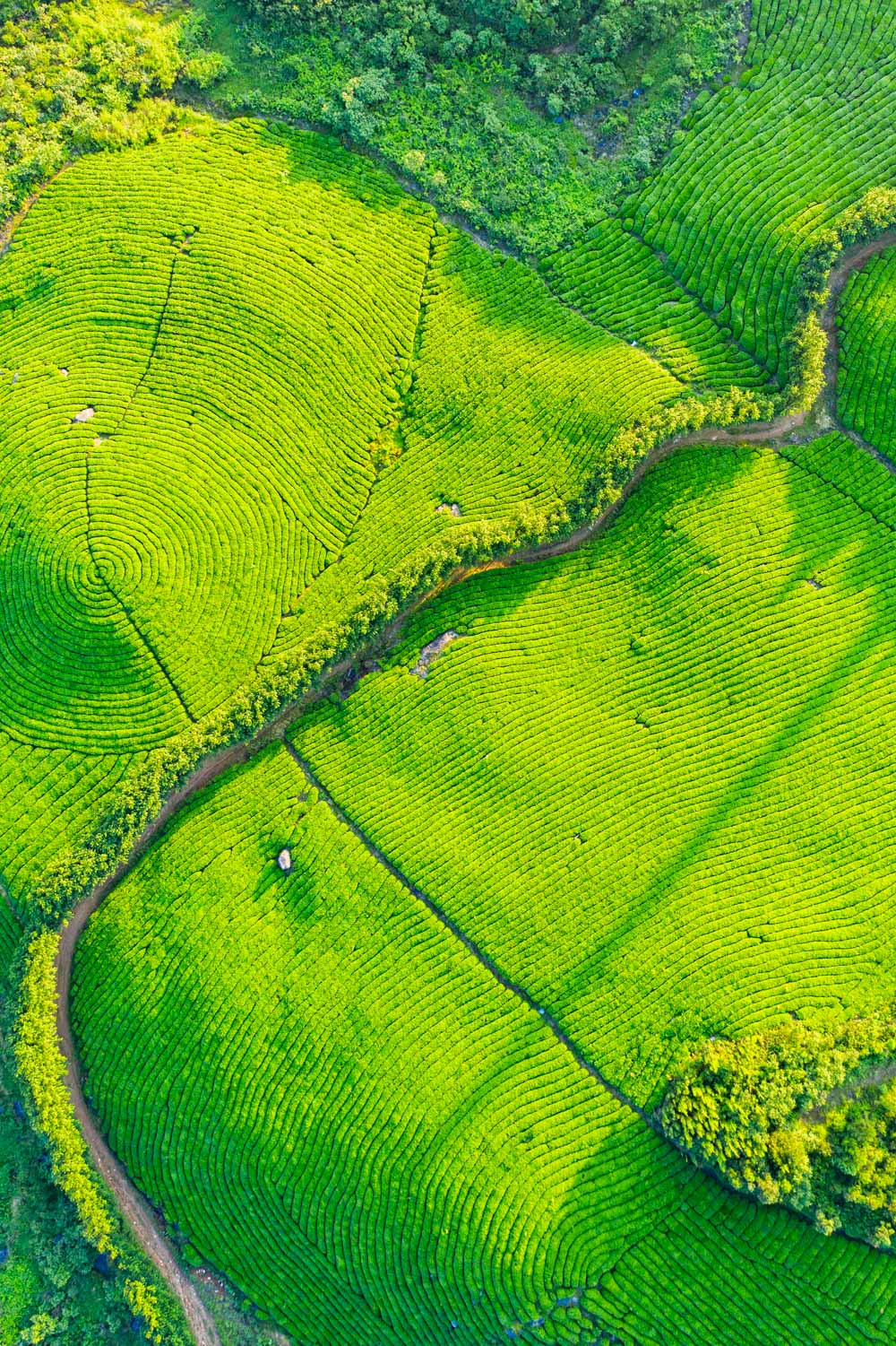 作品介紹: 在浙江中諸暨、嵊州、東陽(yáng)三地交界處的東白山山頂,圍繞著頂峰分布著大片茶園,夏日的茶園在斜斜夕陽(yáng)之下,呈現(xiàn)與眾不同又令人舒暢的質(zhì)感尤其在使用無人機(jī)垂直俯瞰這片茶園的時(shí)候。