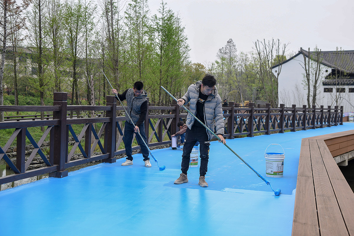 返回頂部>> 照片說明: 游步道、塑膠跑道即將竣工。