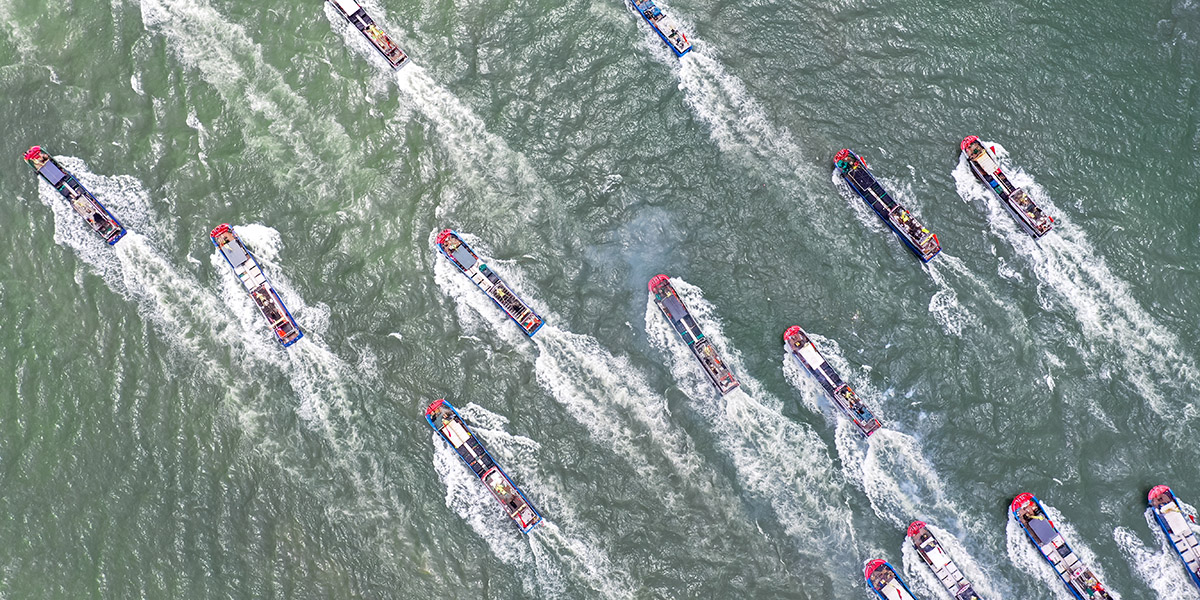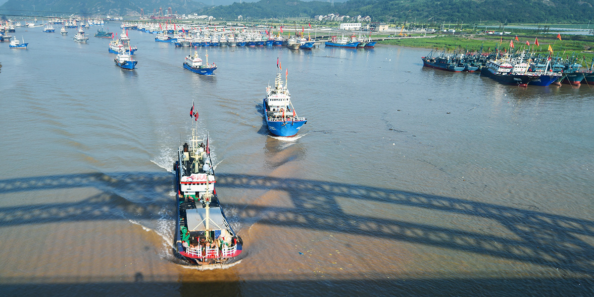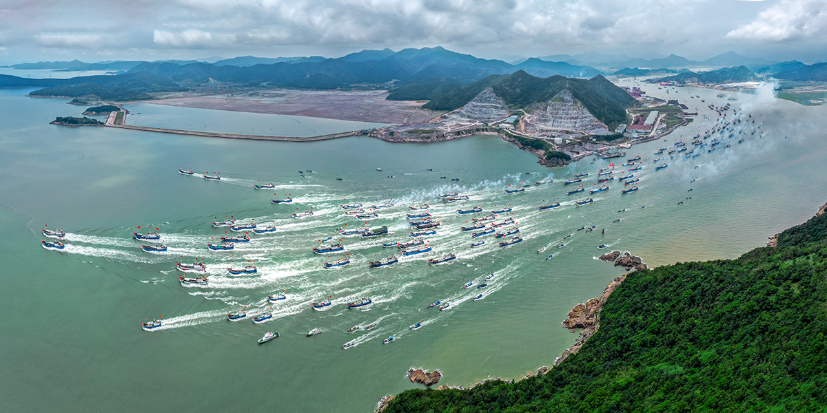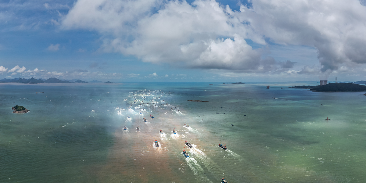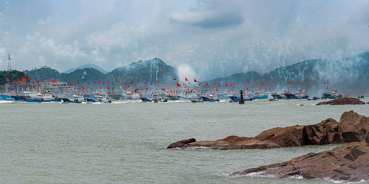 2021年8月1日中午上千艘漁船鳴著笛開出琴江駛向東海,開啟本年度禁漁后的第一網(wǎng)