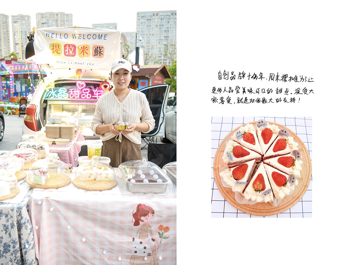 返回頂部>> 照片說明: 楊艷(80后)蛋糕店店主 月均營(yíng)業(yè)額12500元 自創(chuàng)品牌十多年,周末擺攤為了讓更多人品嘗美味可口的甜點(diǎn)。深受大家喜愛,就是對(duì)我最大的支持!(2023.4.16拍攝)