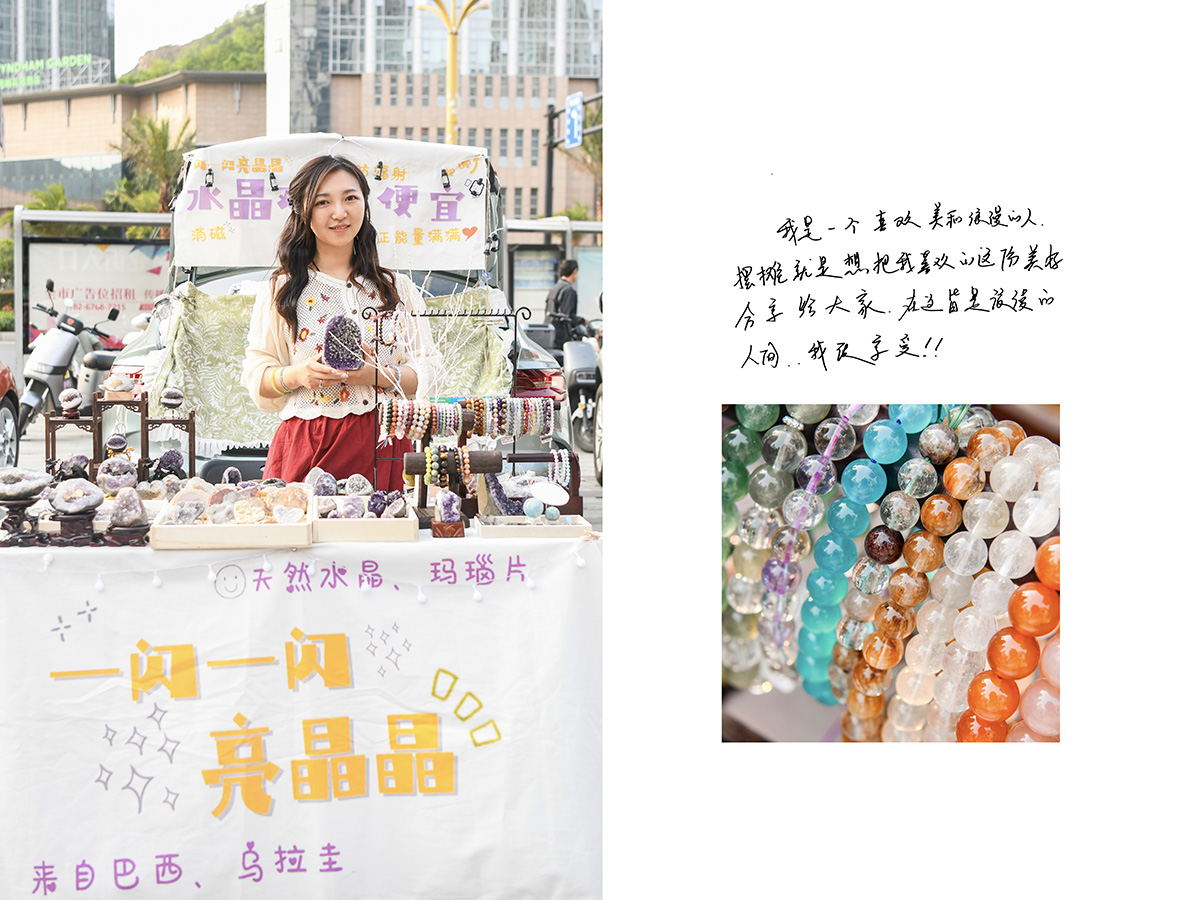 返回頂部>> 照片說明: 謝宜彤(90后)自媒體 月均營(yíng)業(yè)額6000元 我是一個(gè)喜歡美和浪漫的人,擺攤就是想把我喜歡的這份美好分享給大家,在這皆是浪漫的人間,我很享受!!(2023.4.22拍攝)