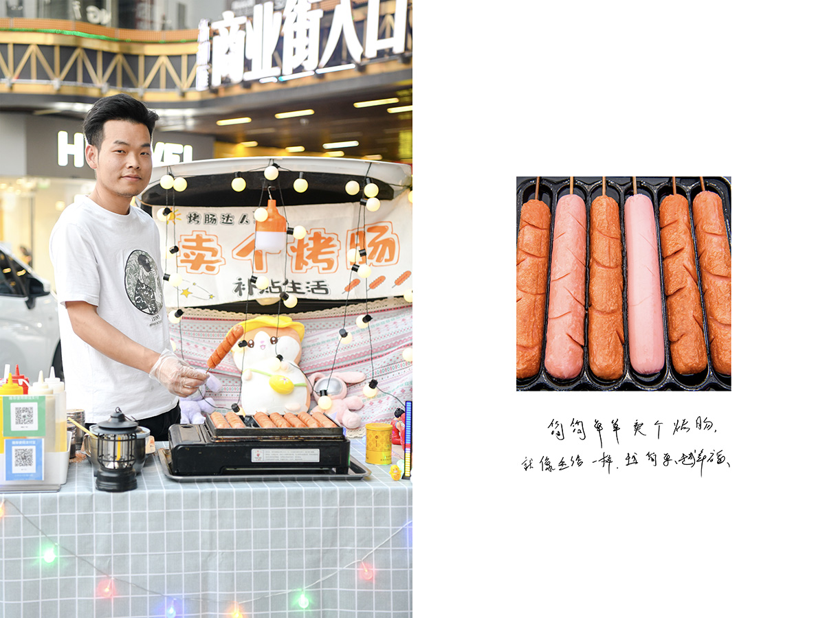 返回頂部>> 照片說明: 黃濤(90后 ) 酒店管理 月均營(yíng)業(yè)額5500元 簡(jiǎn)簡(jiǎn)單單賣個(gè)烤腸,就像生活一樣,越簡(jiǎn)單越幸福。(2023.4.16拍攝)