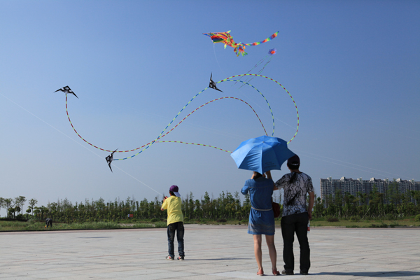 風箏節,一家人正在放飛風箏。。。攝于玉環新城。