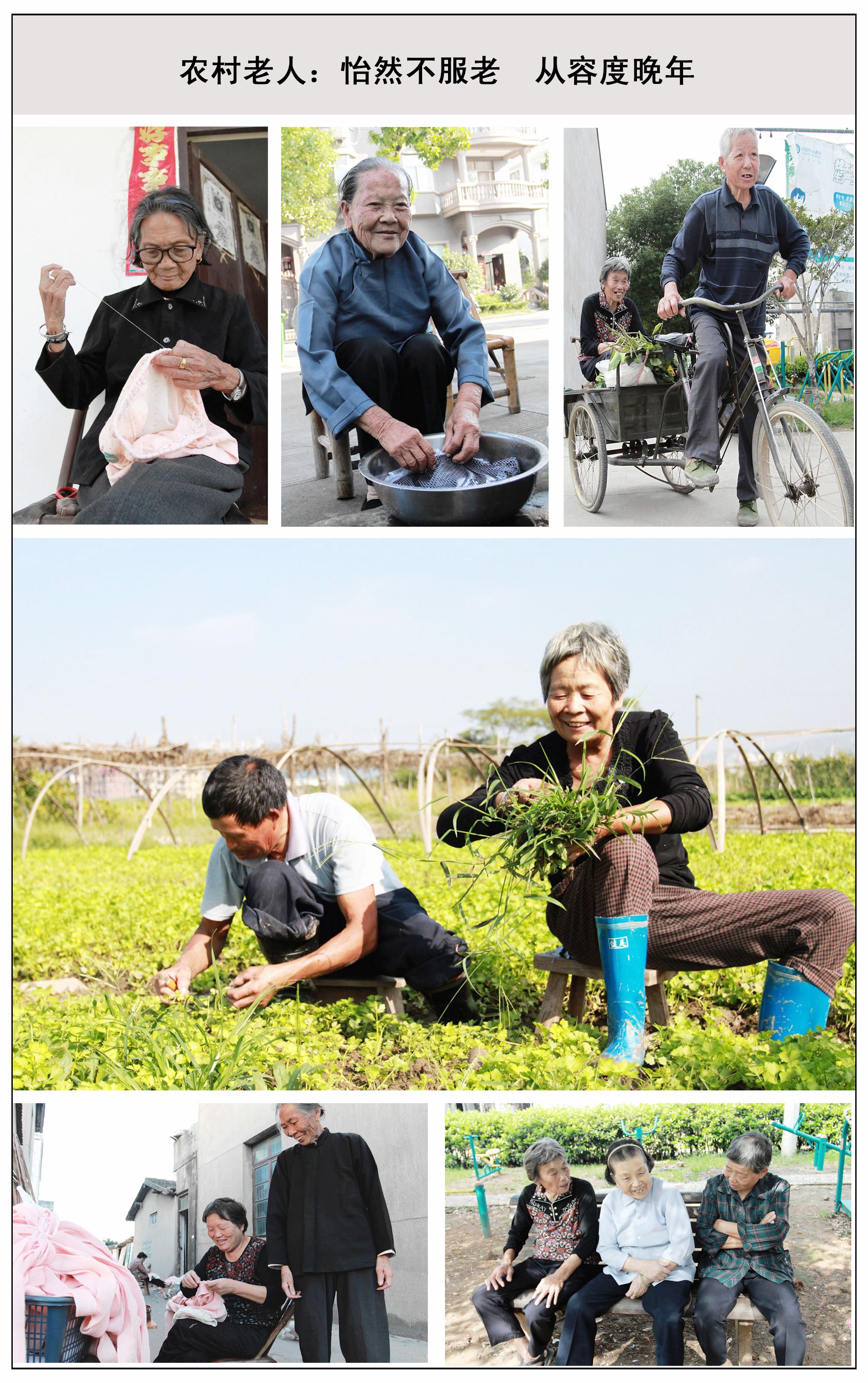 農(nóng)村老人怡然不服老。 城里老人:有滋有味享晚年。