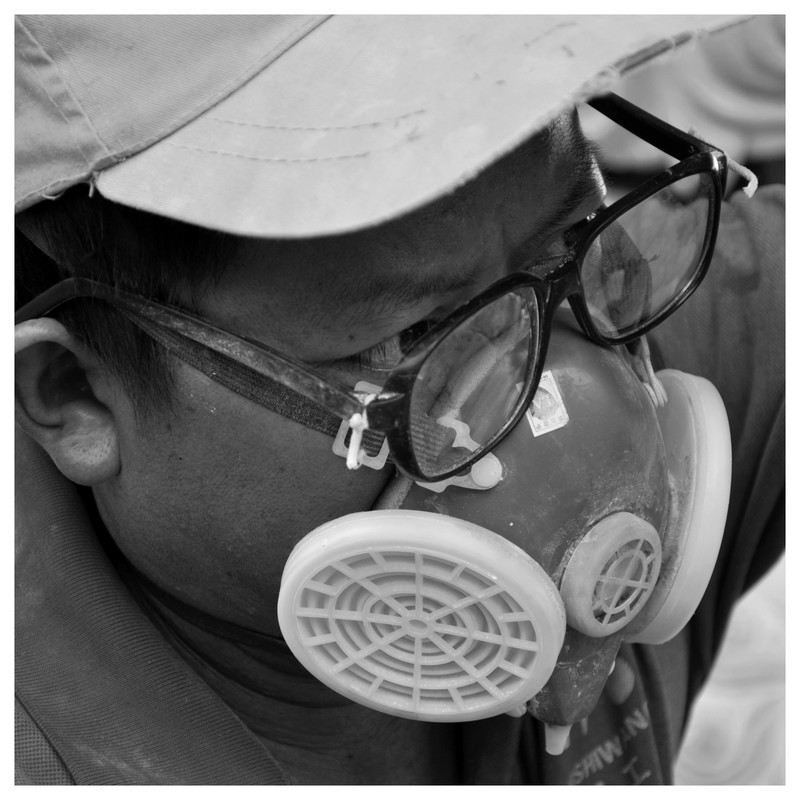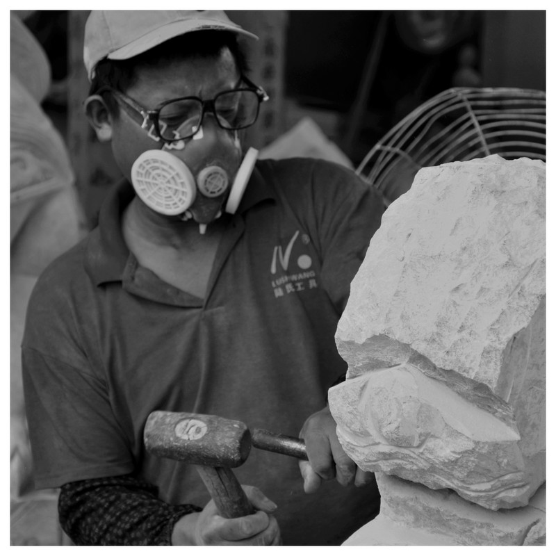 溫嶺肖村民營石雕廠的石匠師傅。