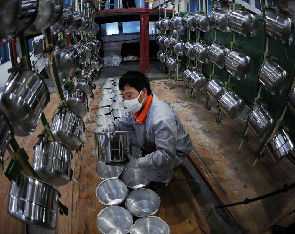 浙江蘇泊爾集團生產車間內,工人正在對產品進行驗收