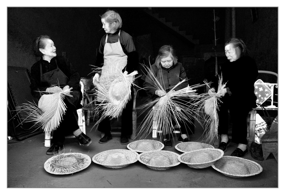 又是草帽的編織時節,鄰家阿婆們聚在一塊,輕松聊天,快樂編織,老有所創!