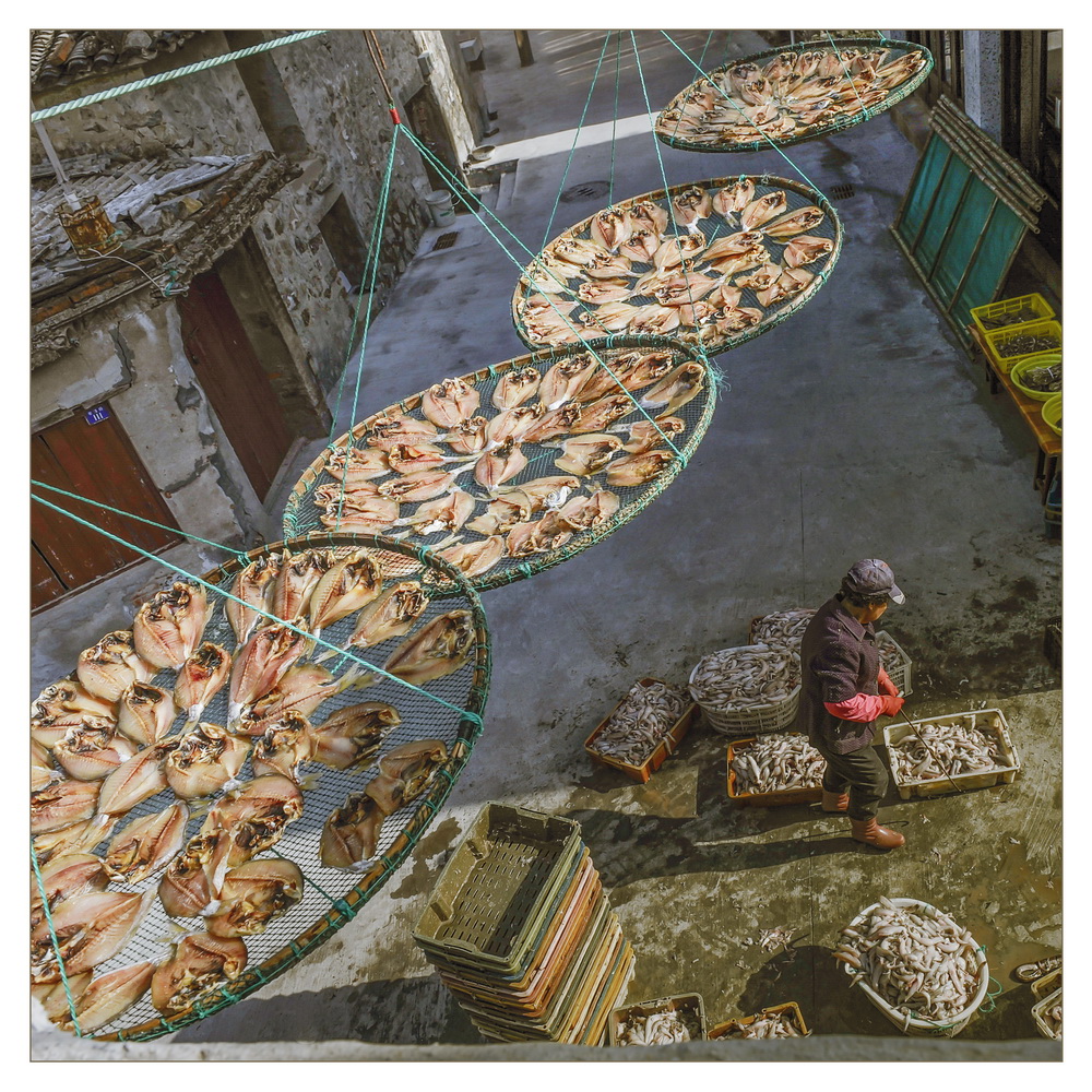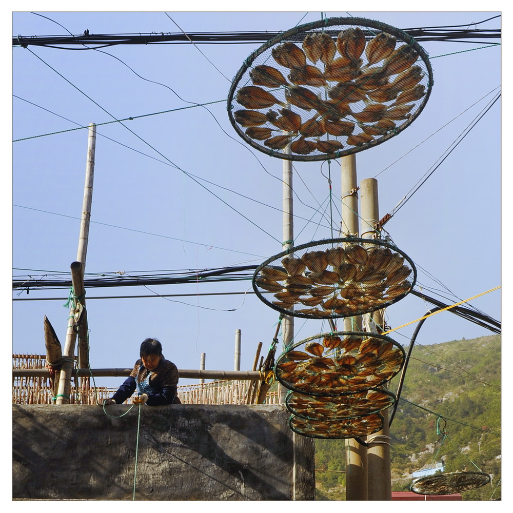 作品介紹:  秋風起的時節,海島居民開始曬秋,那一縷縷魚香在空中飄蕩,久久回蕩。在晴好的日子里,空中飄蕩的魚香一天后就能進入餐桌,讓人深情體會舌尖上的玉環!