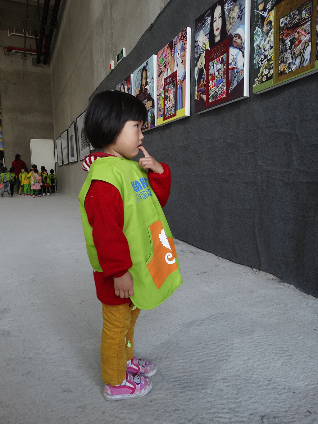 小朋友全神貫注看作品,以至于同伴走了也不知道!可愛的孩子。。。。。。