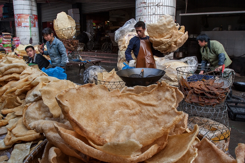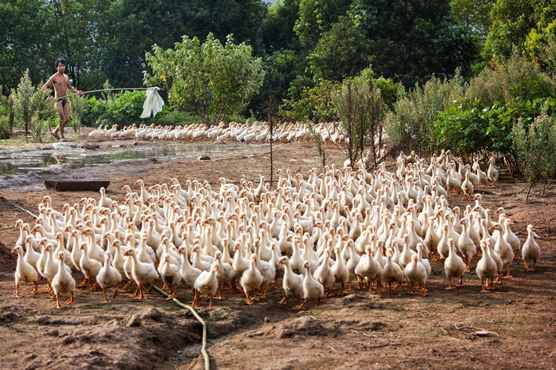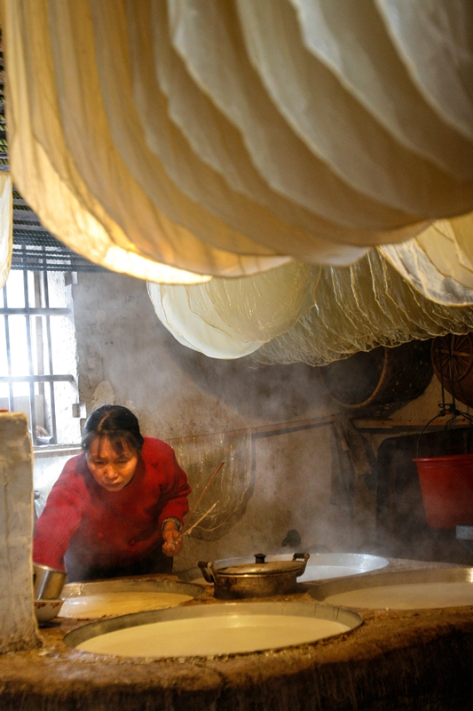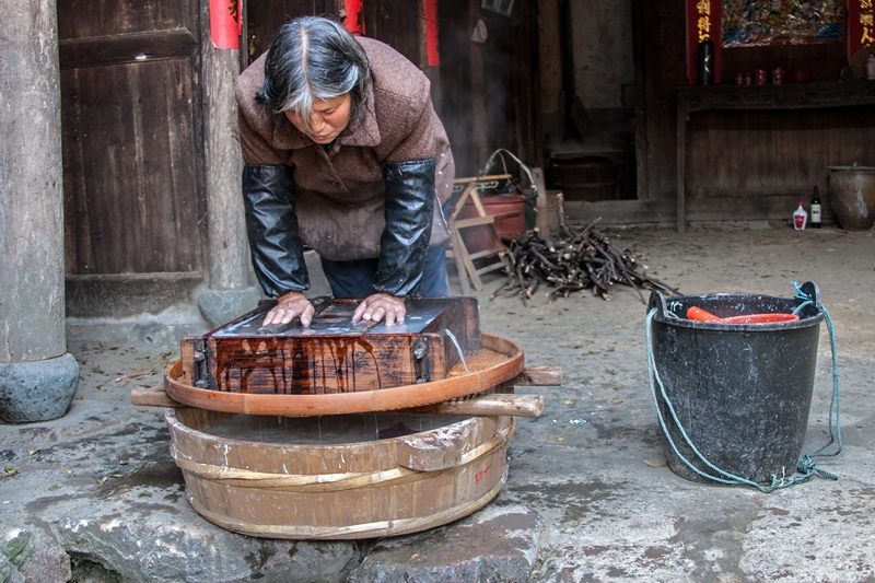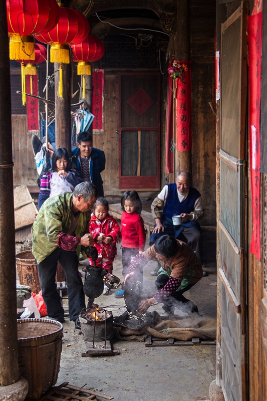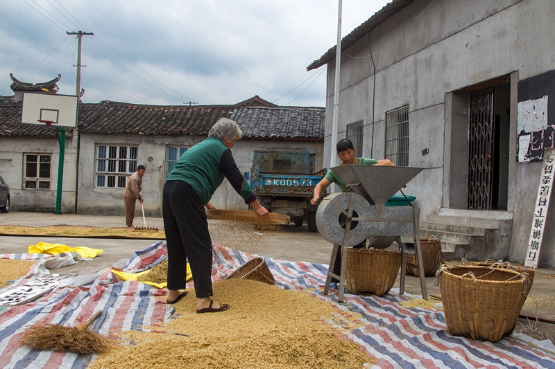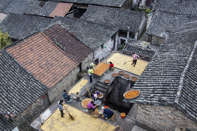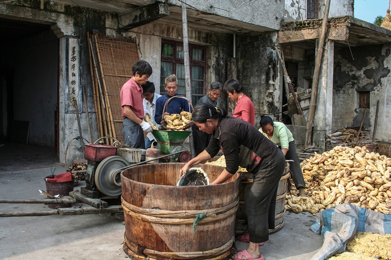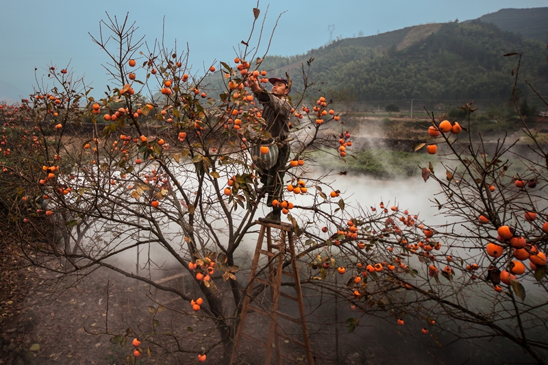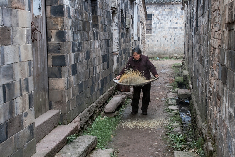作品介紹: 拍攝這組照片,可以說是我對我孩提時代農(nóng)村生活經(jīng)歷的一次“大追捕”。童年的經(jīng)歷,往往讓人如癡如夢,回味無窮。我一直希望用一個攝影專題來展現(xiàn)我曾經(jīng)熟悉的鄉(xiāng)村農(nóng)事場景,表達(dá)自己對過去生活和生命的某種情思。幾十年來,我總是不斷地在夢中回到過去,在田野,在山崗,在河岸,在房前屋后,總會有我的親人朋友和我共度美好時光。跟著大人干家務(wù)、農(nóng)活,和小伙伴一起捉魚,玩耍……夢中的場景總是朝露般難以久留。攝影,便自然而然地成為我走向過往美好時光、追憶似水年華的通道。 民以食為天,你無論是生活在繁華城市,還是生活在偏僻山村都離不開食物,人從出生那天起就離不開吃,吃是人生的頭等大事。所以,我拍攝的這組“浙南農(nóng)事”專題,全部是與食物有關(guān)的農(nóng)事活動。在農(nóng)業(yè)時代,與吃相關(guān)的農(nóng)事活動是非常豐富的,山川田野的出產(chǎn)可以去采收、去捕獲,然后用這些采收和捕獲來的材料制作出更為豐富和美味的食物。犁田、插秧、割稻、打稻、捕魚、釣魚、收葡萄、摘金針、采水菱、采柑橘等等,這些直接與大自然接觸的農(nóng)事活動,其中的辛勞,沒有經(jīng)歷過的人恐怕難有真切的體會。那彎下去的脊背和腰身,黝黑的皮膚,青筋暴出的胳膊和腿,無言地訴說了一切。而像包粽子、爆米花、制作豆腐皮、做番薯粉、燒白酒、腌咸菜、炸豬皮等則是對農(nóng)產(chǎn)品的進(jìn)一步加工和升華,集中體現(xiàn)了先民在追求美好生活中產(chǎn)生的勞動智慧。 在拍攝的過程中,我既注意對勞動者個體精神面貌的展示,又注意對勞動場面的整體把握。豬、狗、雞、鴨等是農(nóng)村生活不可或缺的一部分,注重整個畫面的完整性和濃厚的農(nóng)村生活氣息。涉及到一些農(nóng)活的技術(shù)問題。 時代在發(fā)展,農(nóng)事活動也在變化,其中種植和養(yǎng)殖專業(yè)戶的勞動場面成為我拍攝中的一項重要內(nèi)容,如《橘子交易》《長豇豆市場》養(yǎng)豬》《腌火腿》等。通過拍攝這些勞動場面,能夠把傳統(tǒng)和現(xiàn)代進(jìn)行適當(dāng)?shù)你暯印? 浙南的傳統(tǒng)農(nóng)事活動,隨著城市化進(jìn)程的不斷推進(jìn),將會變得越來越稀少,有些傳統(tǒng)的農(nóng)事活動甚至可能將不復(fù)存在。很多作家早已把筆觸伸向這個領(lǐng)域,希望通過自己手中的筆,記錄下這個時代的變遷,為后世留下一份生動的原始資料。而作為一名攝影人,也有必要用我們的方式將這些場景記錄下來,傳播開去,留傳下去,讓更多的人了解它們,懂得它們。事實上,要全面而深入地展現(xiàn)浙南的農(nóng)事活動,是非常困難的。農(nóng)事活動,即使是跟食物相關(guān)的活動,也極其豐富。 除了勞動本身之外,我還關(guān)注了勞動者勞動時所處的環(huán)境,如山脈、河流、田野、村落、屋舍、場院以及生活生產(chǎn)工具等等。而如《去谷殼》中的村中小巷、青磚墻和長條石,《殺雞》中石鋪小巷和石墻石屋,《種番薯》中遠(yuǎn)處的層層梯田,《爆米花》中舊式土木結(jié)構(gòu)的房屋等,則是浙南農(nóng)人在長期的生產(chǎn)生活中創(chuàng)造出來的建筑景觀。這些環(huán)境同樣包含了豐富的信息,對于相對完整地留存和展示傳統(tǒng)農(nóng)事活動非常重要。《做年糕》中晾曬所使用的番薯籬,《磨米粉》中的磨子,《采柿子》中的梯子,《腌咸菜》中的菜板、菜刀、方筐,《做饅頭》中的蒸籠,《曬谷子》中村民所使用的去殼工具風(fēng)柜、盛谷的畚斗、篩谷的米篩、裝谷的籮筐,《柿子干等》中的大木桶和團(tuán)箕,《燒白酒》中的長木桶、大鐵鍋,《香菇市場》中的香菇籃子,《網(wǎng)魚》中的魚網(wǎng),《做豆腐》中的木箱和淺木桶,《打稻》中的打稻機等等,都是傳統(tǒng)浙南農(nóng)家長期使用的生活生產(chǎn)工具。這些形態(tài)各異的工具,當(dāng)我們走近它們,了解它們的制作結(jié)構(gòu)和使用方式,會由衷地為它們的純樸和踏實、精巧和智慧而贊嘆不已。 某種意義上來說,這些內(nèi)容是我們了解浙南農(nóng)村傳統(tǒng)生存狀態(tài)的一把鑰匙。當(dāng)然,這只是我拍攝這一組照片的部分意圖所在。 在拍攝這組照片的較長過程中,農(nóng)人干農(nóng)活時的那份氣定神閑、那份堅持、那份平實,農(nóng)村人與人之間的那份情感,那份真心,那份滿足,農(nóng)事內(nèi)容之豐富,思想內(nèi)涵之深邃,農(nóng)人生存之辛勤與艱難,都讓我深感震撼和愧疚。當(dāng)我們錦衣玉食、寶馬雕車之際,真應(yīng)該多把目光投向這些艱辛的農(nóng)人和他們生存的土地。因為這個社會需要人們更多的關(guān)注和共同的努力,才會變得更加美好。