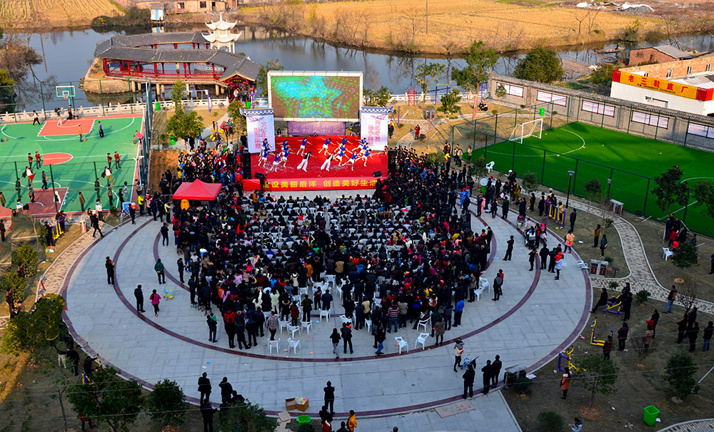 稅收給后洋村帶來了新的變化,農民文化生活日益豐富。圖為后洋村文化禮堂開放儀式。