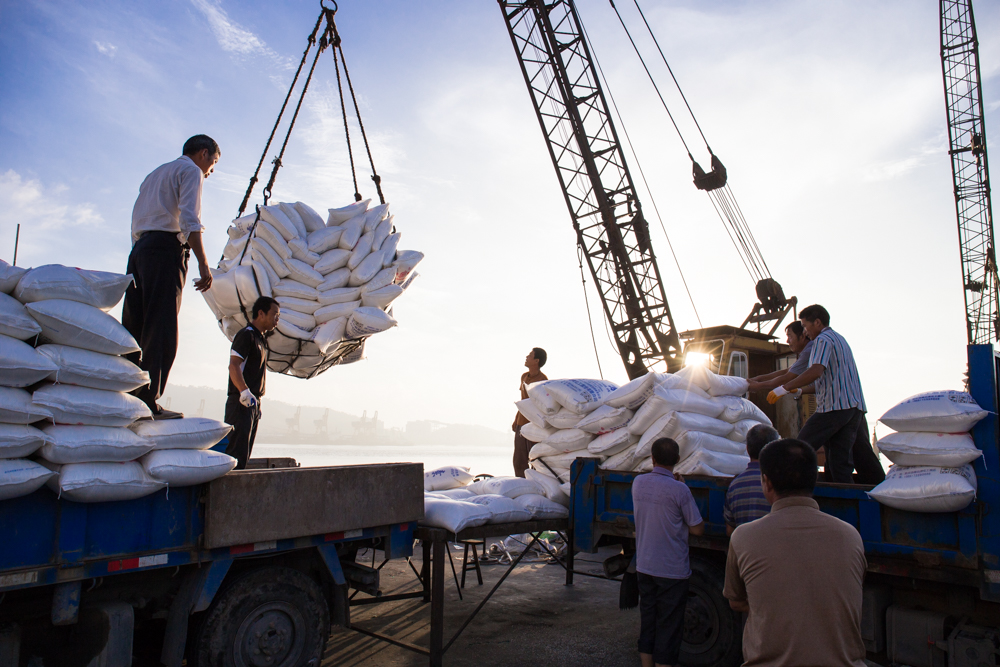 碼頭搬運分為兩種:一種是固定在碼頭上,專門為船只裝貨或卸貨;另一種是以碼頭為中心流動工作。 隨著城市發展, 卸貨也告別了肩扛時代,在船上的工人們先是用網裝好少量的貨物后,由吊車吊到岸上的貨車上,由車廂里的工人進行堆放。 臺州椒江碼頭搬運工人早上4點多就來上工了,一般工資是400-500一天,隨著現代運輸業的發展,并不是每天都有搬運工作。