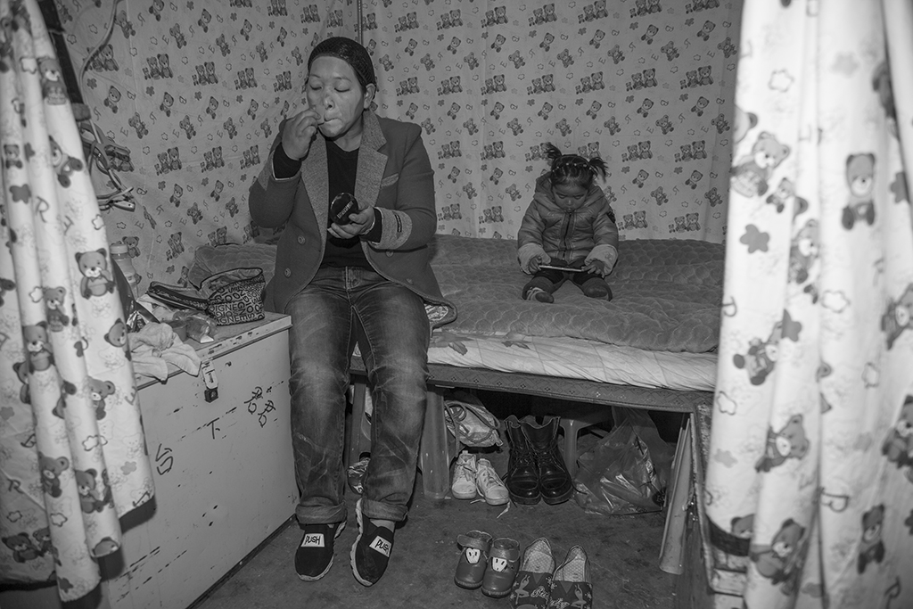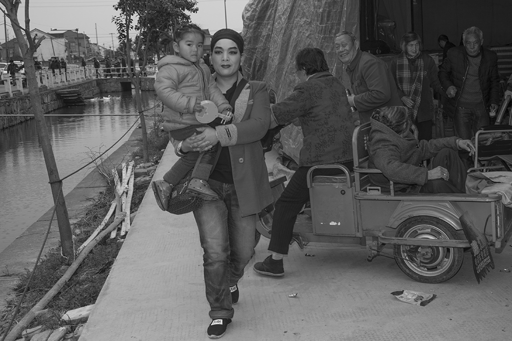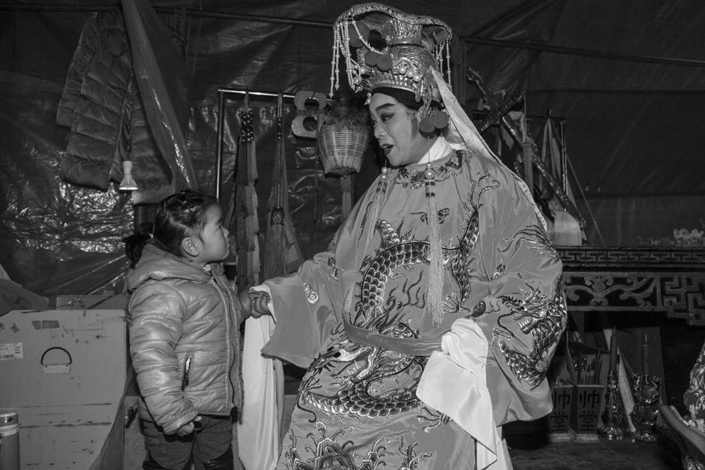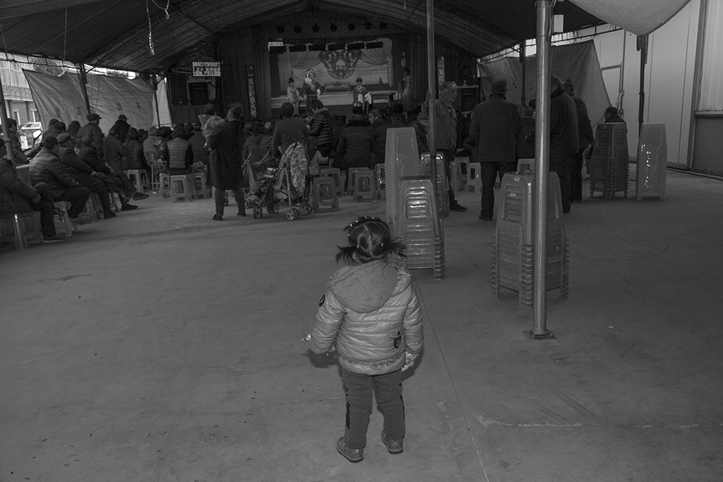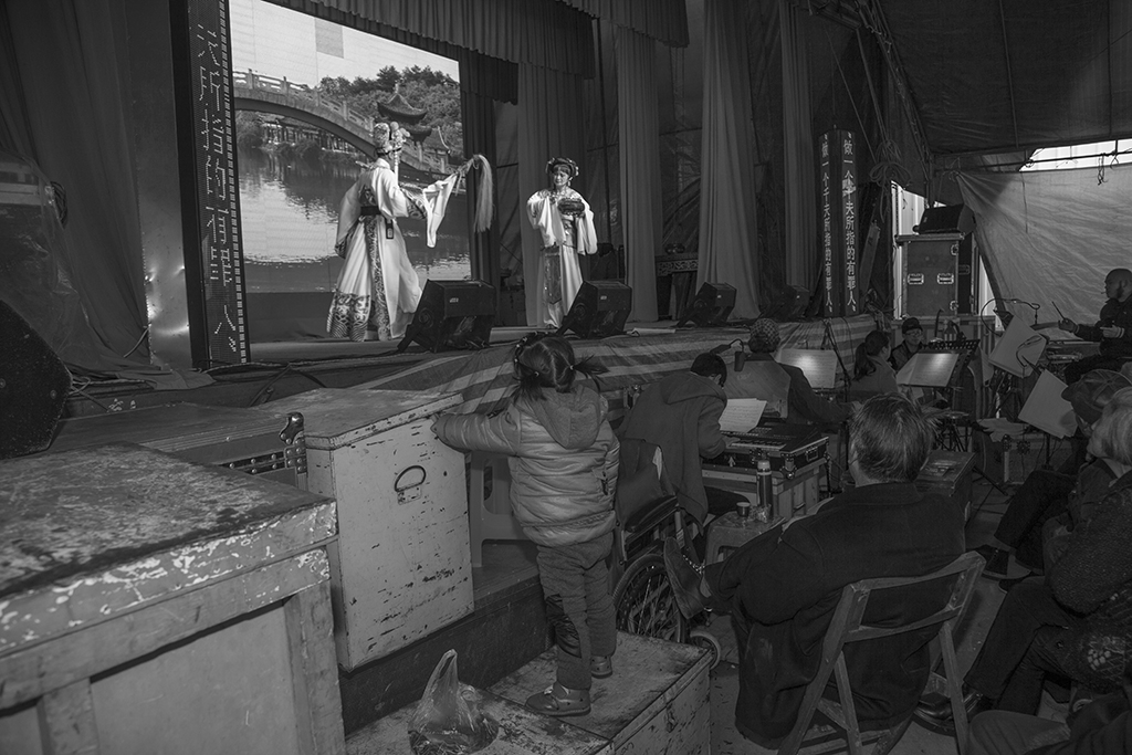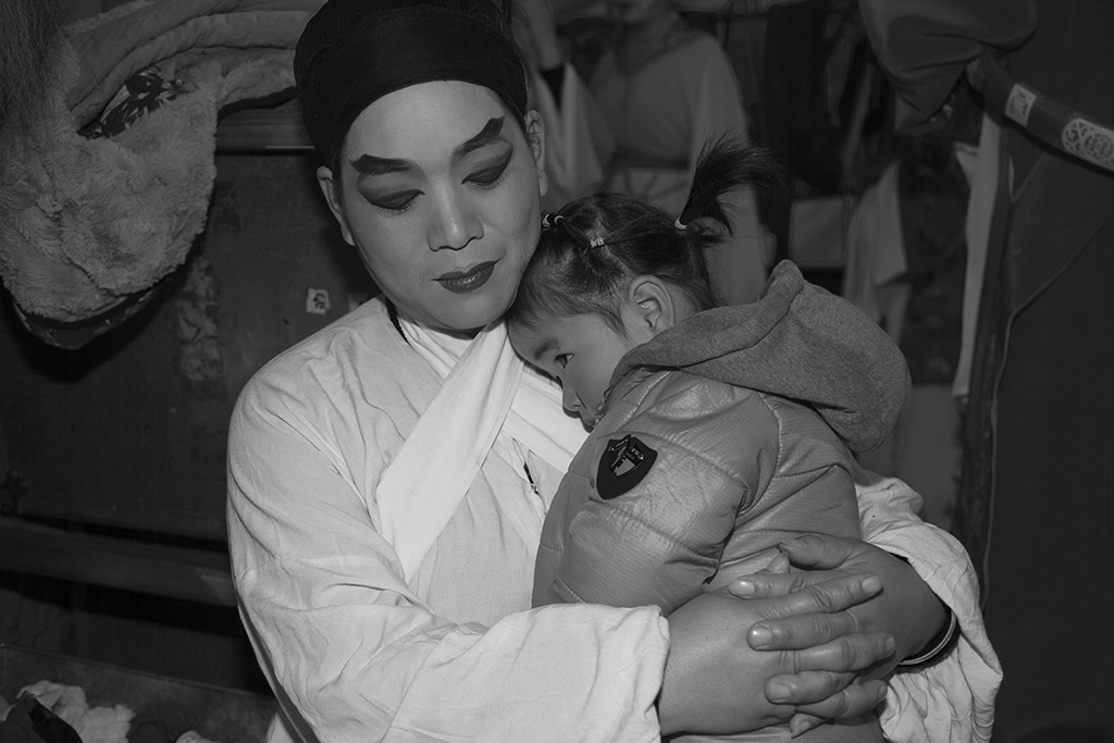作品介紹: 因朋友長期在戲曲樂隊中工作,我在休息期間去看他。那天碰到一對母女。由于都是老鄉,溝通也比較方便,我便把母女一天的生活記錄下來。與母親在一起的時光總是快樂的溫馨的,哪怕吃得不是太好,睡得不是太舒服,卻有機會在母親的懷里撒嬌。母親登臺前,在后臺與母親告個別,在演出期間,小女孩在臺下可轉來轉去,看樣子與觀眾混得也熟了。與城里的孩子相比,這時候應該去學校上學,而且有可能還要報上幾個興趣班。這就可能是一種對比吧!