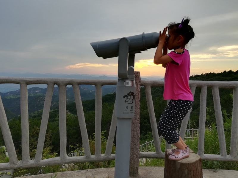 下班途徑獅子口,剛好夕陽西下,小孩被獅子口的景色吸引,美麗的晚霞還有那好奇的天文望遠(yuǎn)鏡,令小孩玩的激動(dòng)不已。
