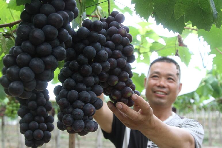 作品介紹: 2017年5月24日,在臺州市路橋區(qū)蓬街鎮(zhèn)雙和村水果種植基地,果農(nóng)李金榮正采收今年第一批大棚葡萄,并以每公斤15元的批發(fā)價銷往上海、南京等地。近年來,路橋區(qū)大力發(fā)展葡萄產(chǎn)業(yè),全區(qū)目前大棚葡萄種植面積已超過1萬多畝,僅葡萄一項就為當(dāng)?shù)剞r(nóng)民增收上億元。