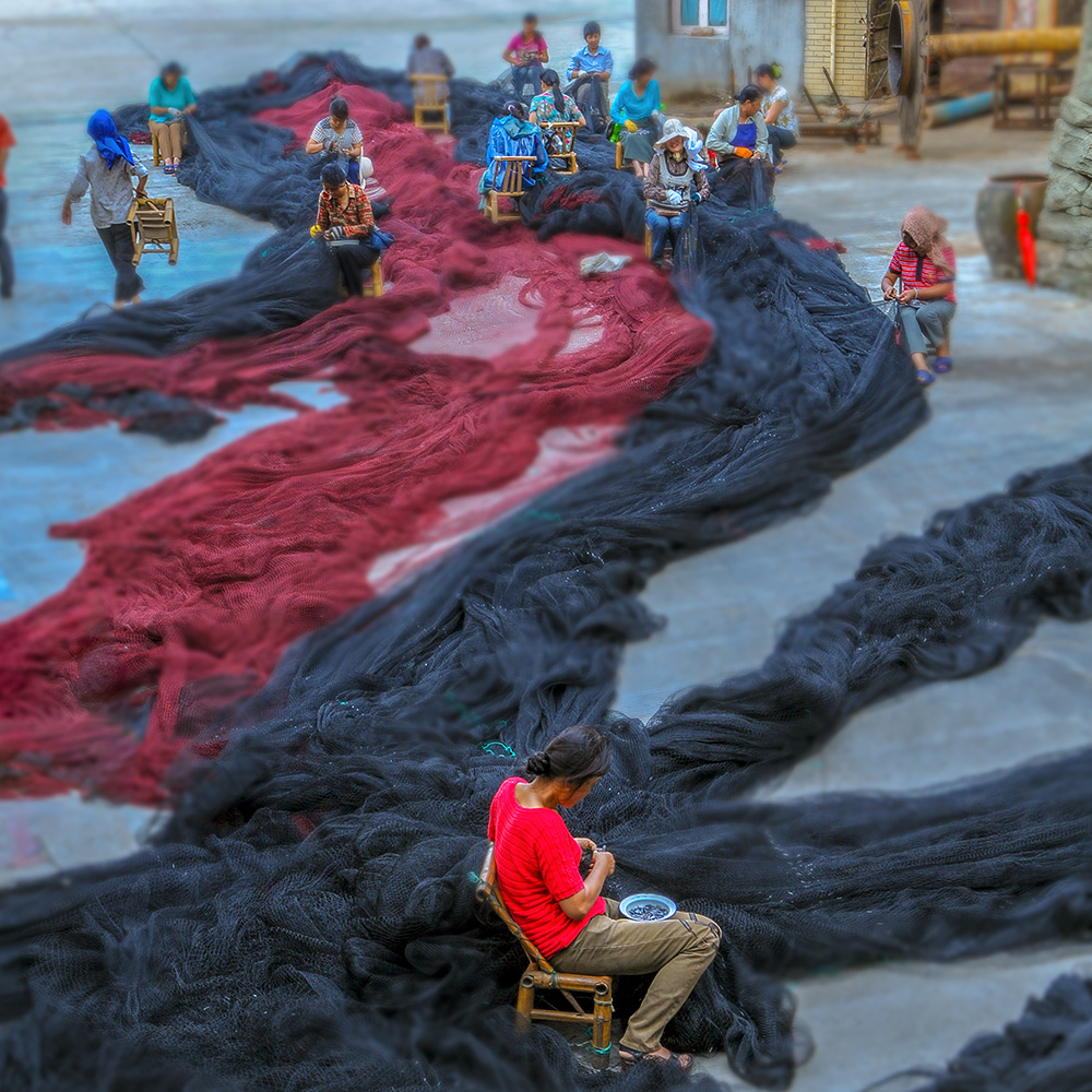海邊補(bǔ)漁網(wǎng)