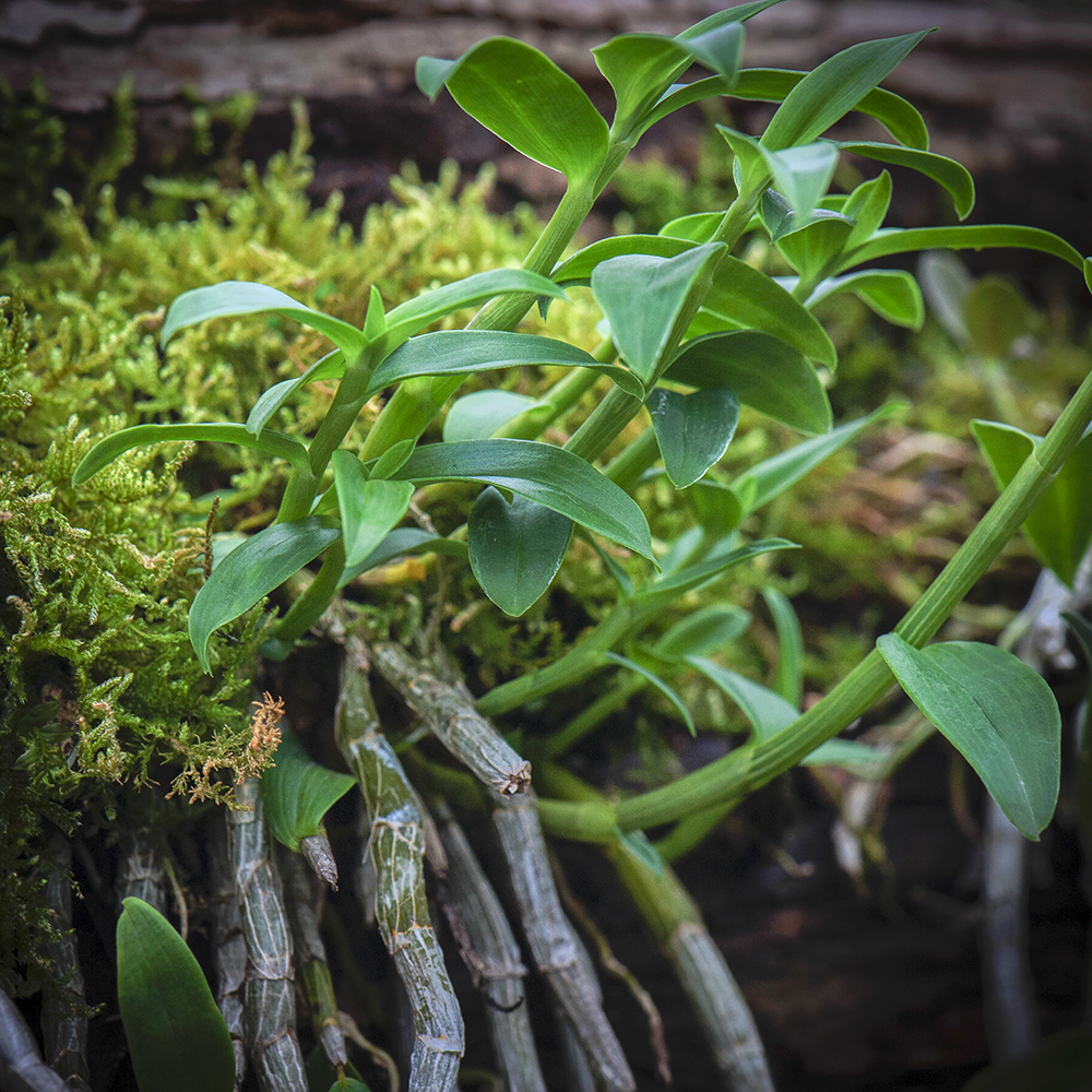 鐵皮石斛種植在樹木上。