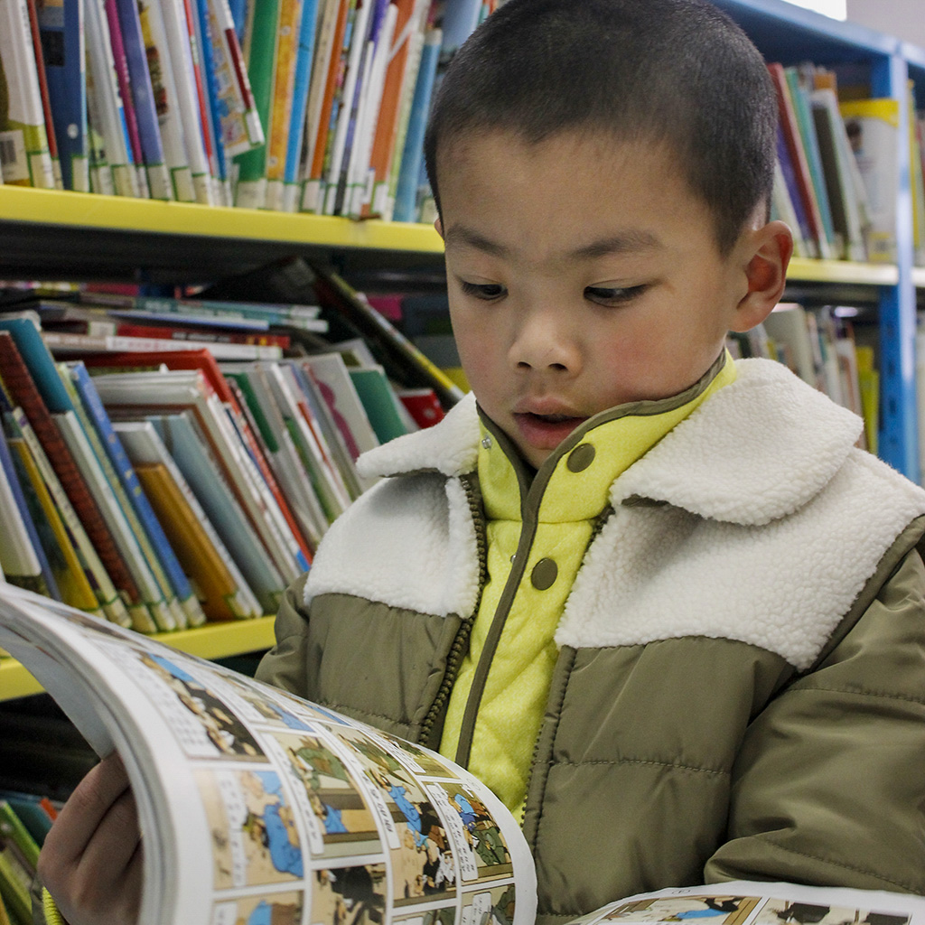 《閱讀伴我成長2010-2019(組照4)》拍攝于2015年2月19日,兒子快六歲了,帶著他去蒼南圖看書,能自己在書架上查找喜歡的書了。