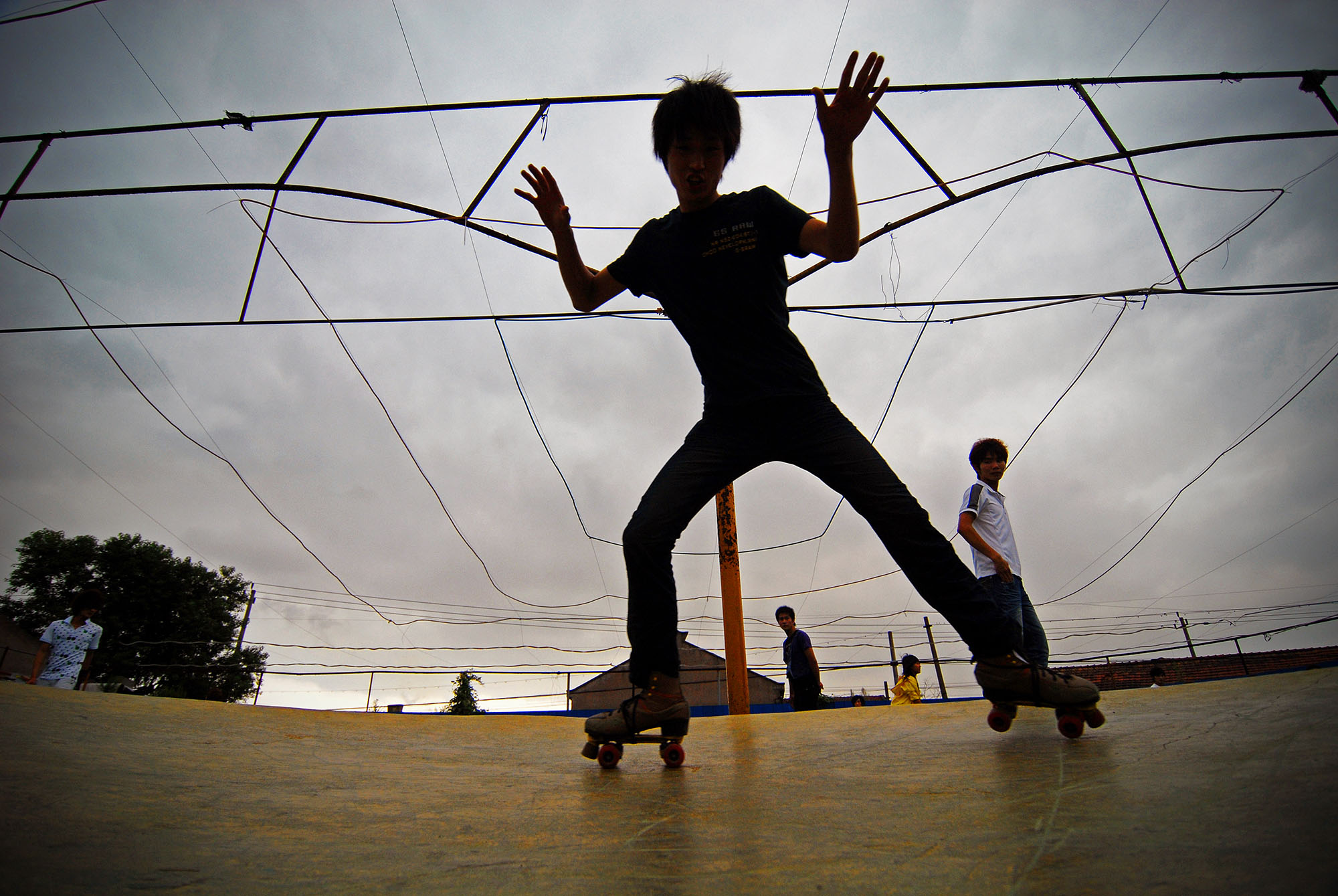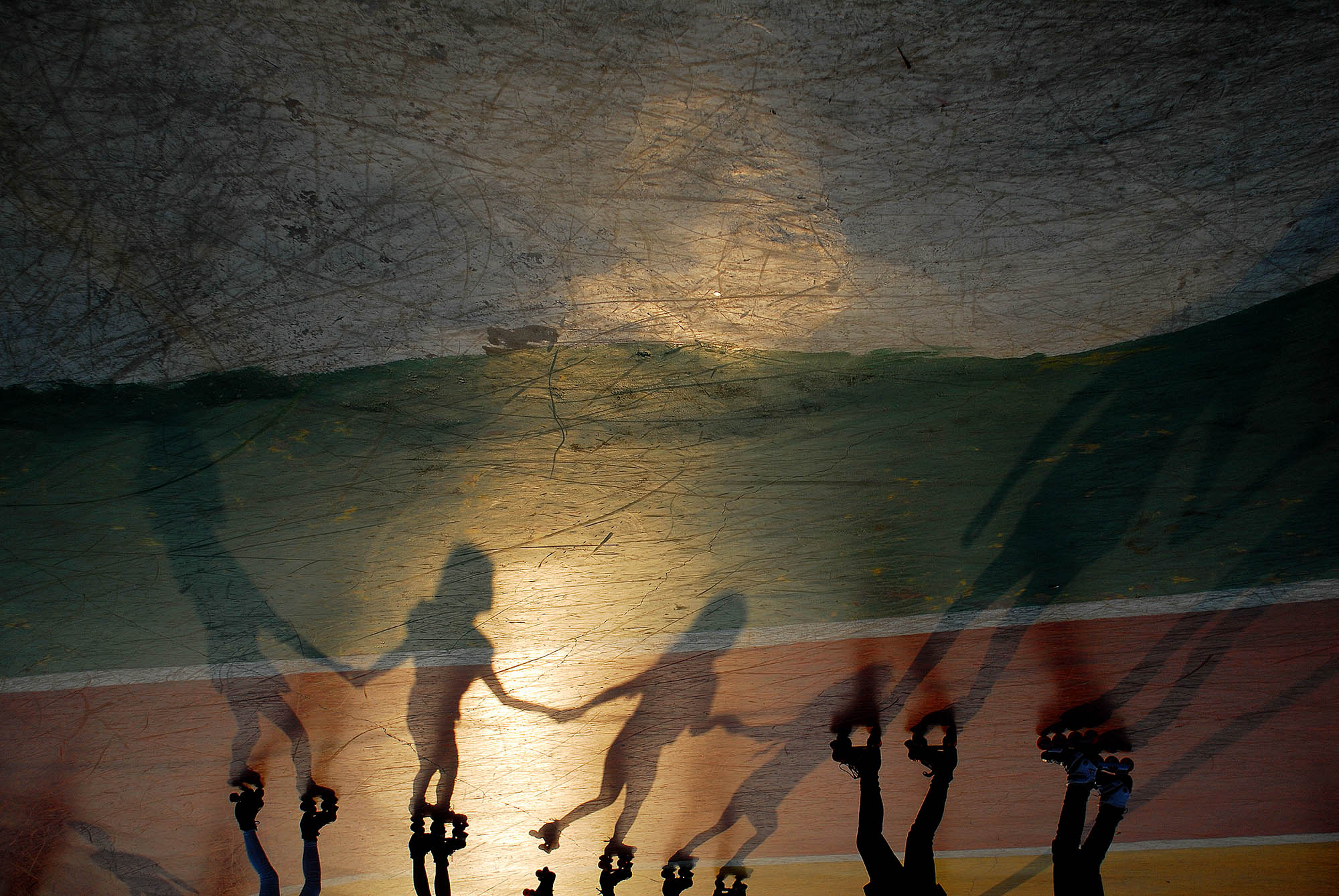 每當(dāng)夜晚降臨,霓虹燈閃爍,整個(gè)露天溜冰場塞得滿滿的,爆棚的音樂和刺耳的尖叫聲強(qiáng)烈刺激著每個(gè)人的聽覺系統(tǒng),他們瘋狂扭動(dòng)身體,歇斯底里吶喊,猶如夢游,卻是另一種青春的亮光和顫動(dòng)。