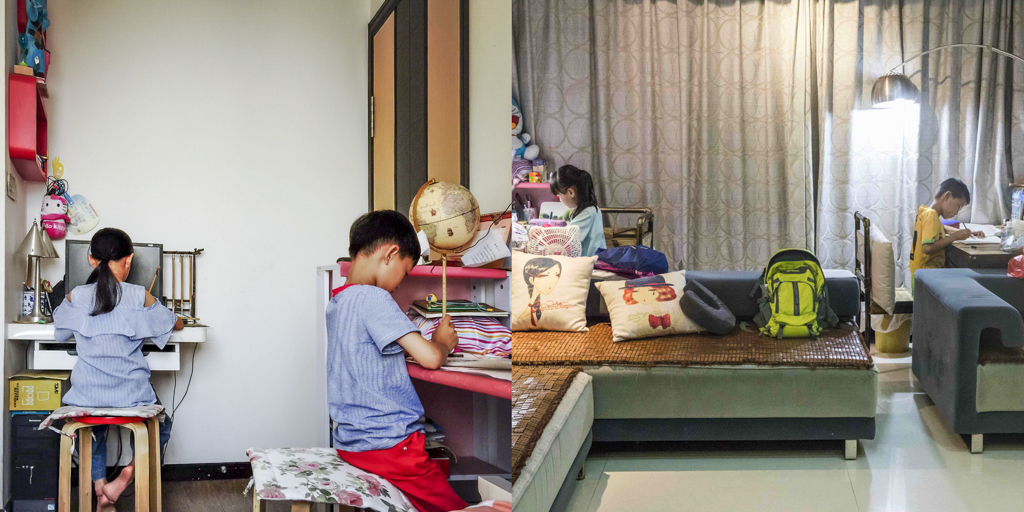 弟弟在認(rèn)真的做作業(yè),姐姐在校運(yùn)動(dòng)會(huì)上做為運(yùn)動(dòng)員代表宣誓