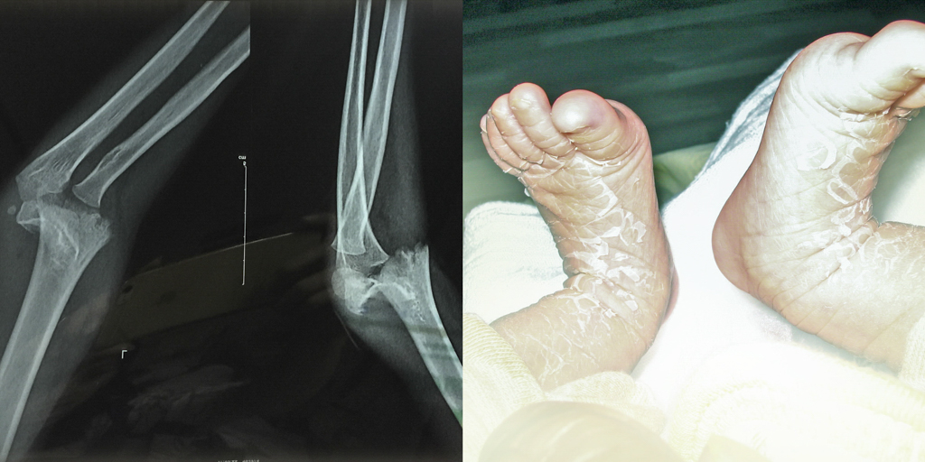 男孩骨折的CT片和女孩剛來世上的雙腳