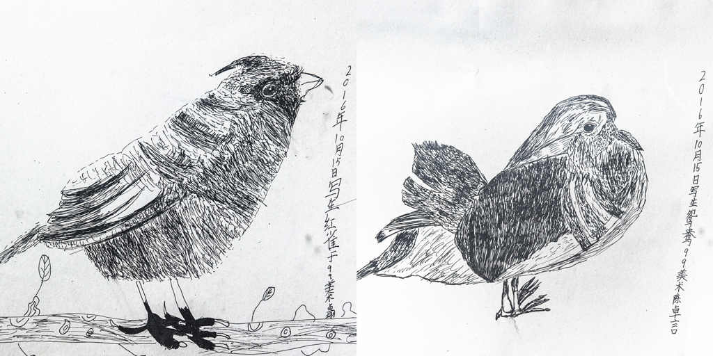 男孩和女孩一起上的畫畫課,男孩和女孩所呈現(xiàn)的不同的小鳥