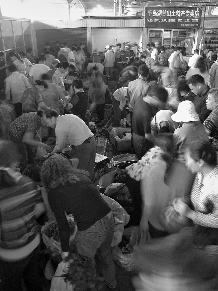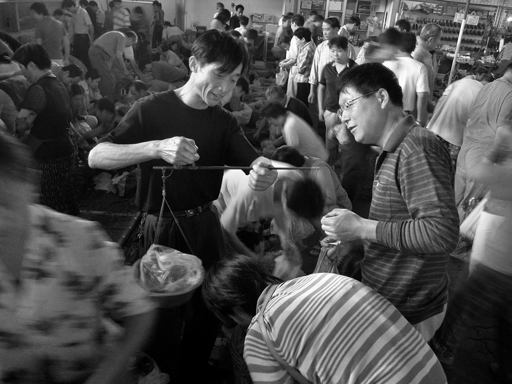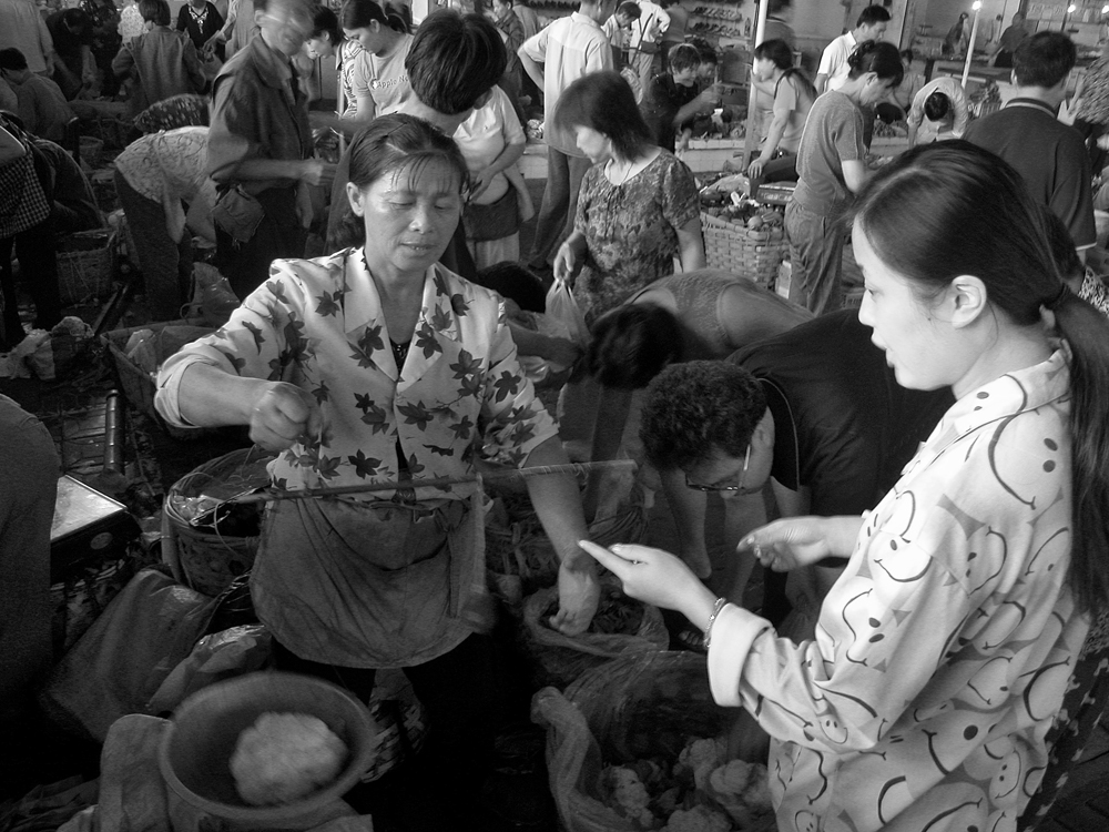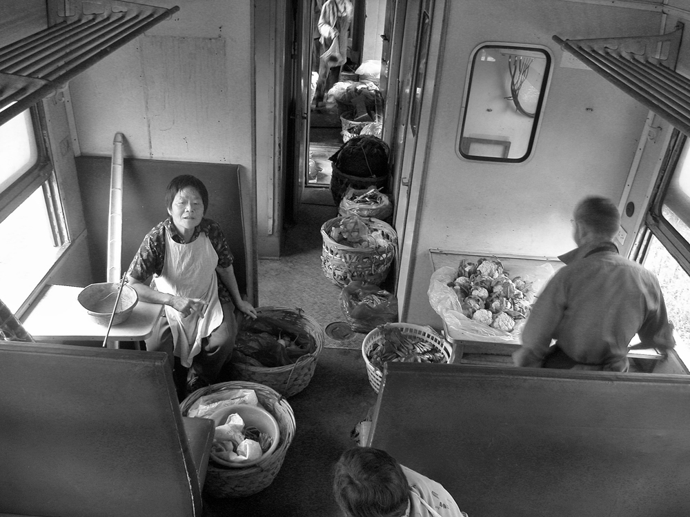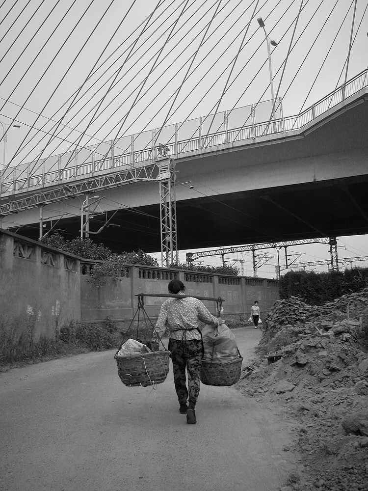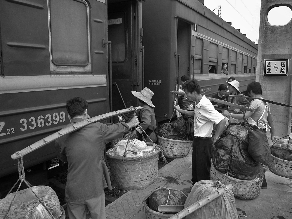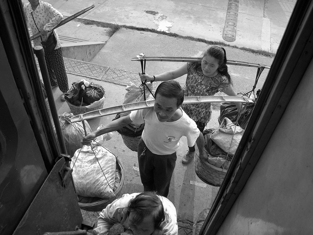 作品介紹: 在杭州以北20公里有這樣一個地方喬司鎮(zhèn),那里有許多以種菜為主的菜農(nóng),過去為去杭城農(nóng)貿(mào)市場賣菜煩惱過,菜農(nóng)們只有踩著三輪車去賣菜。杭州鐵路分局為了與當?shù)氐霓r(nóng)民搞好“魚水情”的關系,允許這些菜農(nóng)們乘坐鐵路職工上下班的火車到杭州去賣菜,為當?shù)氐牟宿r(nóng)們帶來的方便,這樣菜農(nóng)們每天早上8:00坐這趟車,經(jīng)過50分鐘,車到到杭州艮山門車站,菜農(nóng)們把菜挑到“杭州文暉農(nóng)貿(mào)果品市場”去賣。當?shù)氐木用褚卜浅O矚g他們帶來的瓜果蔬菜,一則很新鮮,二則價格低廉。不到一小時就全部賣完,到中午11:00菜農(nóng)們挑著空筐重新坐上這趟車回家,日復一日,年復一年。由于鐵路進入了高鐵時代,從安全角度考慮,在2010年已經(jīng)取消了這項業(yè)務。這組片子拍攝于2006年10月,地點:杭州市。