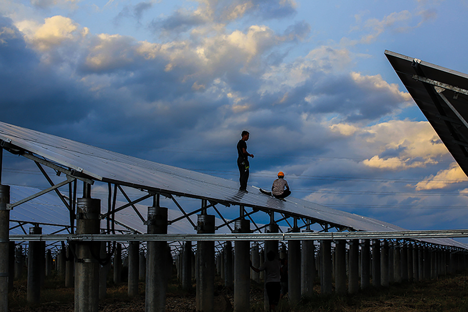 為維護光伏電廠的正常運行,檢修工經(jīng)常在認真的檢修。