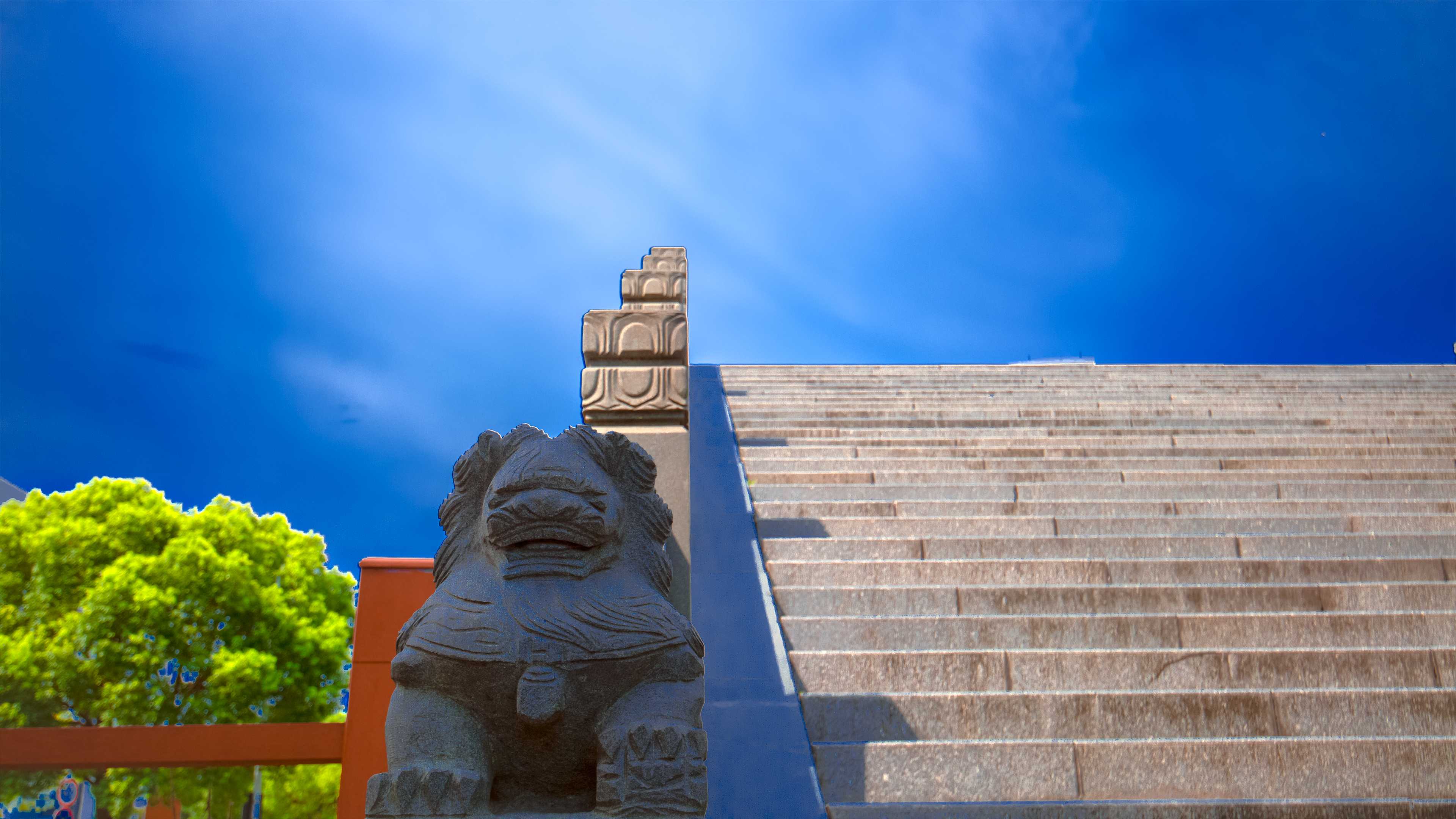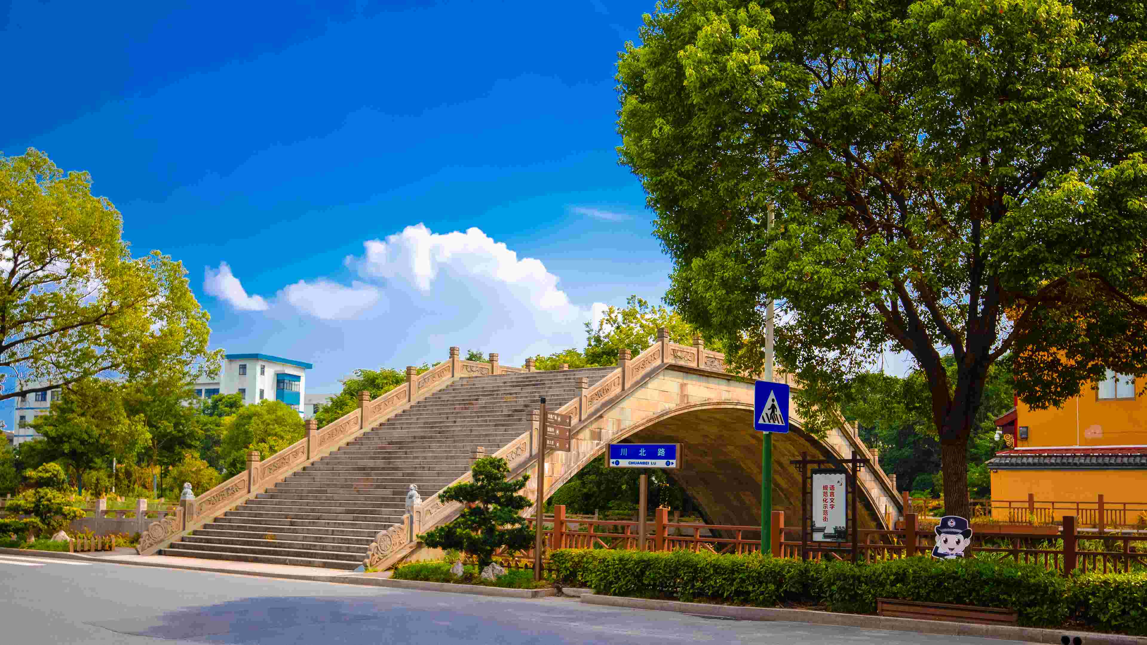仰望大橋,一層層的臺階,仿佛是通往天堂的樓梯。