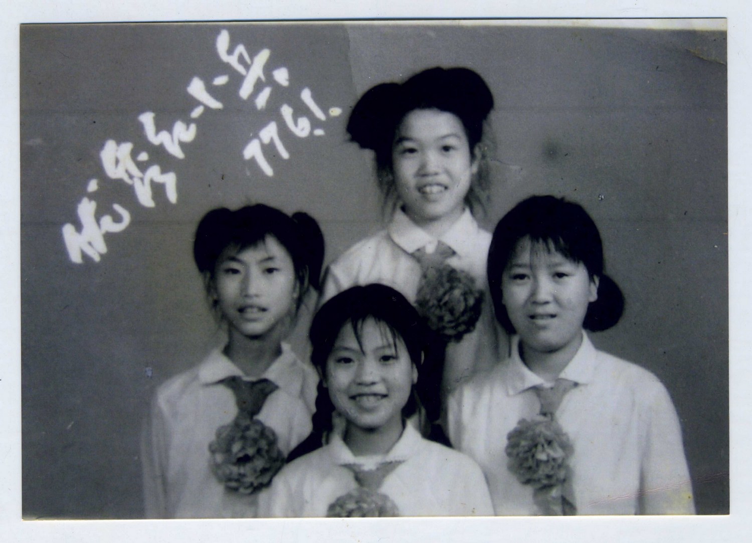 1977年“六一節”,班里四名“優秀紅小兵”合影,最前者為吳玲。