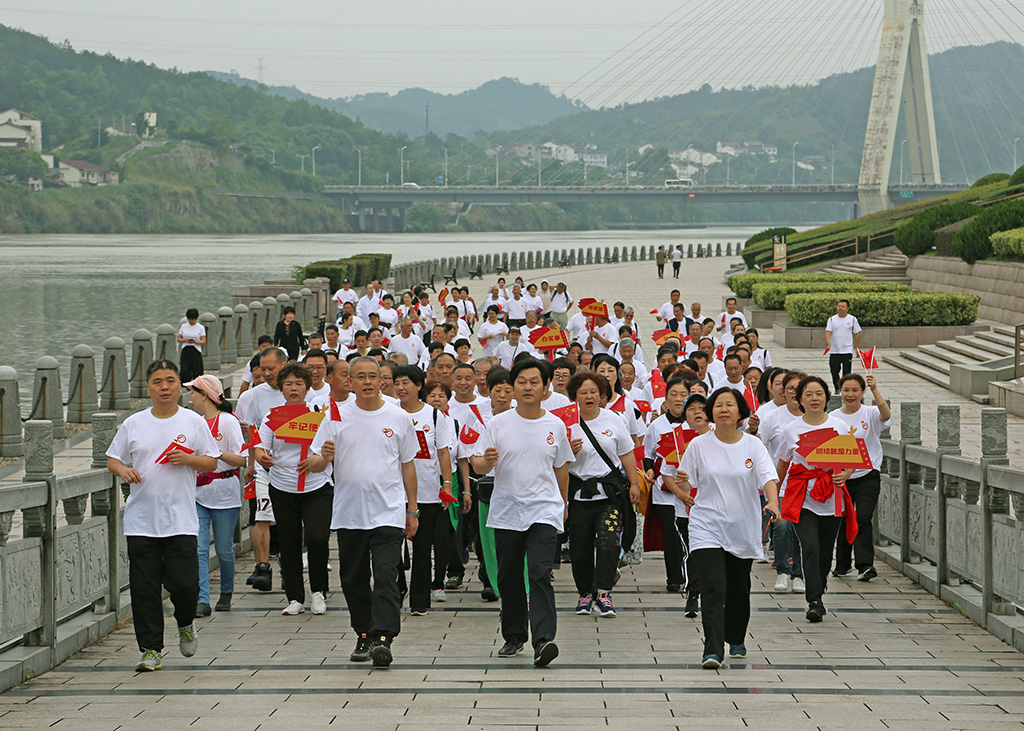 同心共祝中國共產黨百年華誕“學黨史、強信念、跟黨走”在麗水南明湖畔的健步走活動