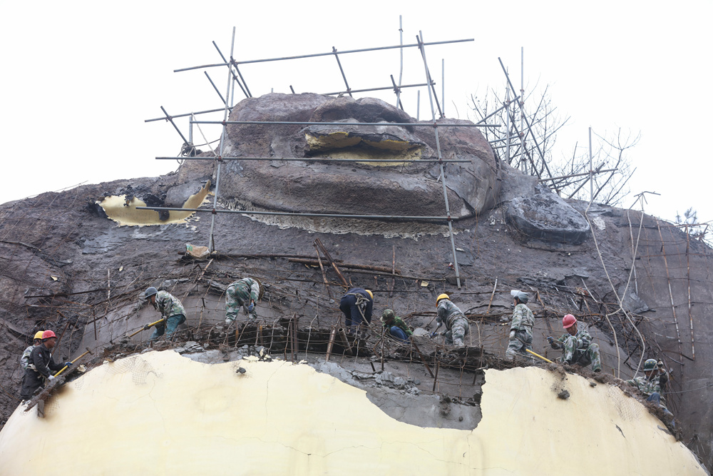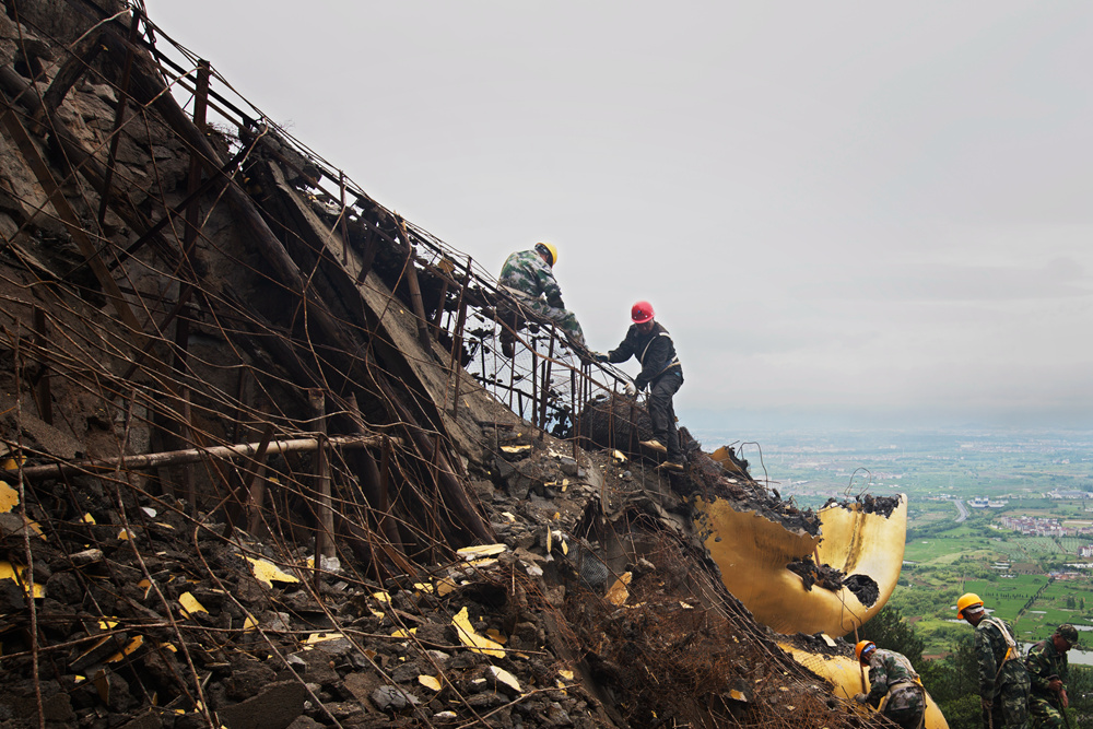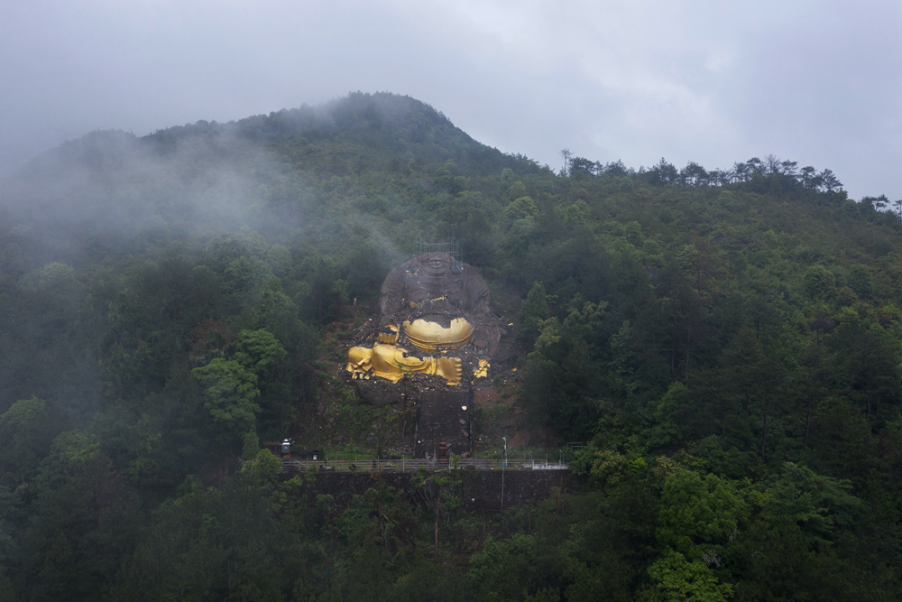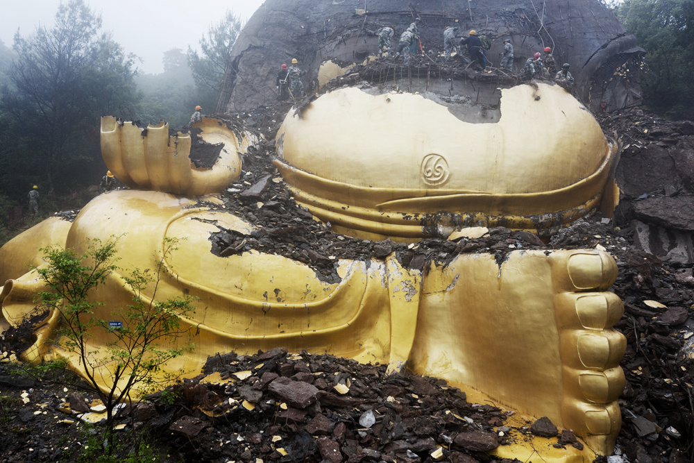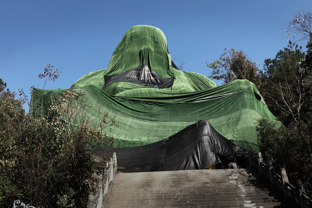 作品介紹: 佛的形象,不言不語,也了然于心。我們常說“悟佛之言,定要行佛之行”,佛者,覺也,法者,正也,佛若不守法,自當棄之。這座高大的浙中大佛,建于上世紀九十年代,經(jīng)歷蒼茫歲月。與青山環(huán)繞的自然美景顯得格格不入,在這個“綠水青山就是金山銀山”的新時代,生態(tài)不容破壞,景觀建筑更要有法可依,我記錄下這個瞬間,是致敬法治中國下執(zhí)法必嚴,違法必究的堅定決心。