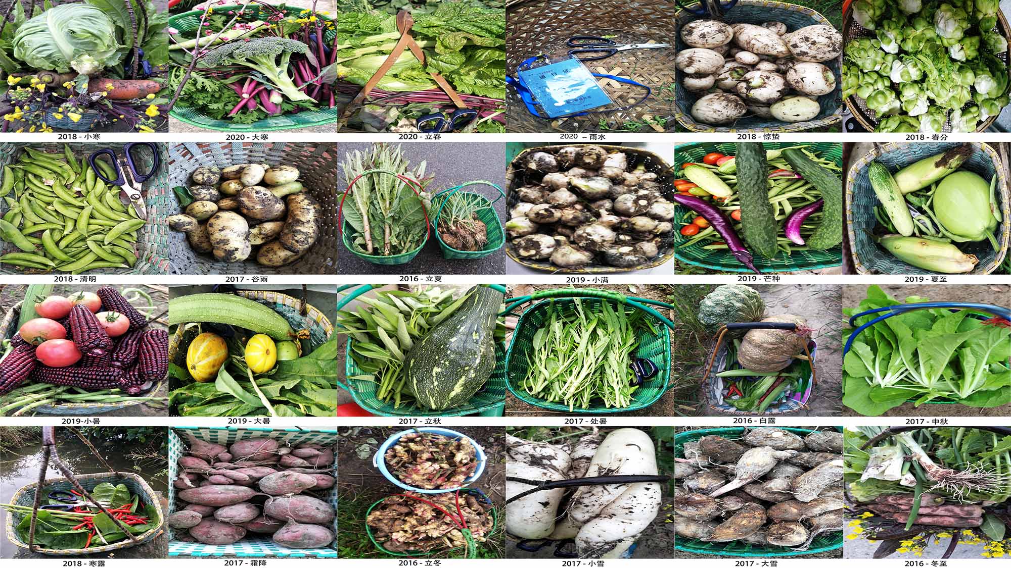 一手握鋤柄,一手按快門。這句話是我對自己業(yè)余生活現(xiàn)狀的自嘲。屈指數(shù)來,租地種菜已有八年,手機快門亦不曾間斷地忠實記錄三分地的點點滴滴,各種天氣條件、植物蔬菜、動物昆蟲、佃農(nóng)勞影、種子肥料、農(nóng)具小屋、四季收獲、生活場景、土壤文字、田埂雜草等等都會攝入鏡頭。特別說明第5,10二片分別是平時拍攝的各色佃農(nóng)勞影與24節(jié)氣時期菜籃子里蔬菜的多圖排列。