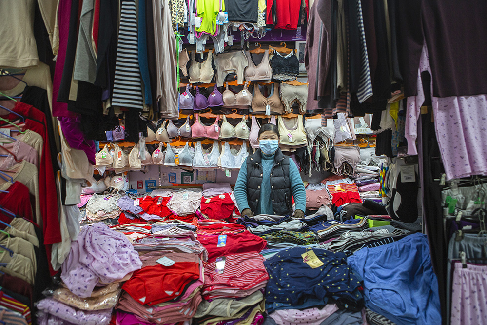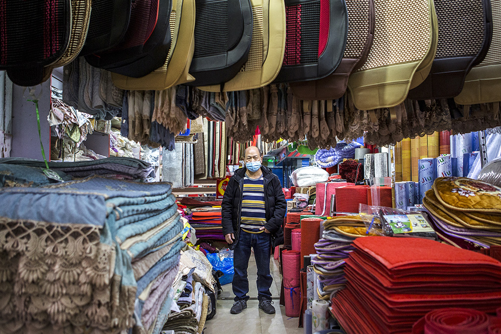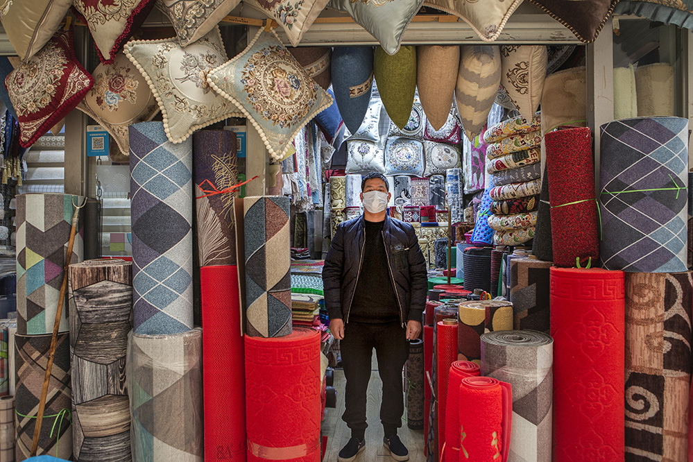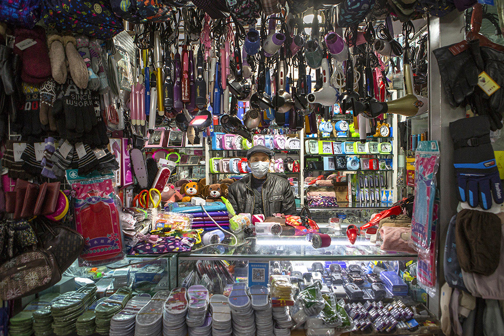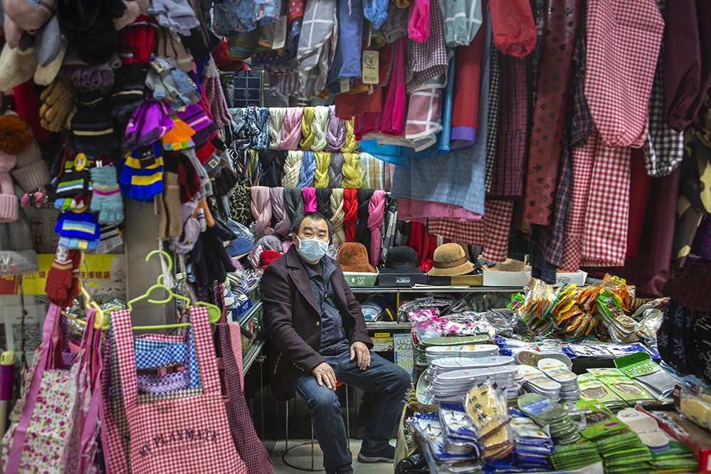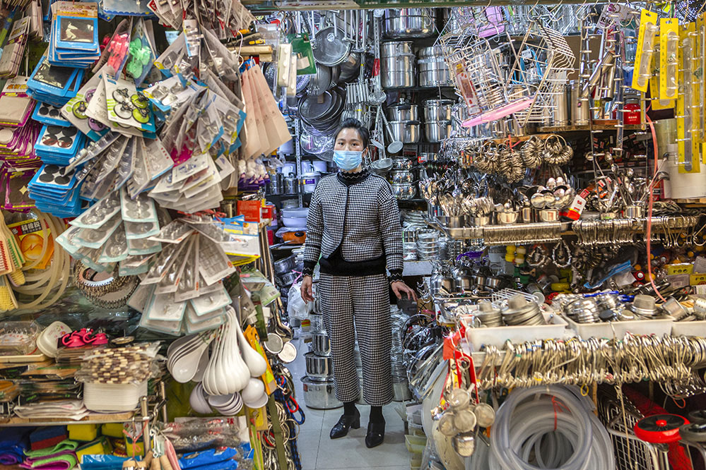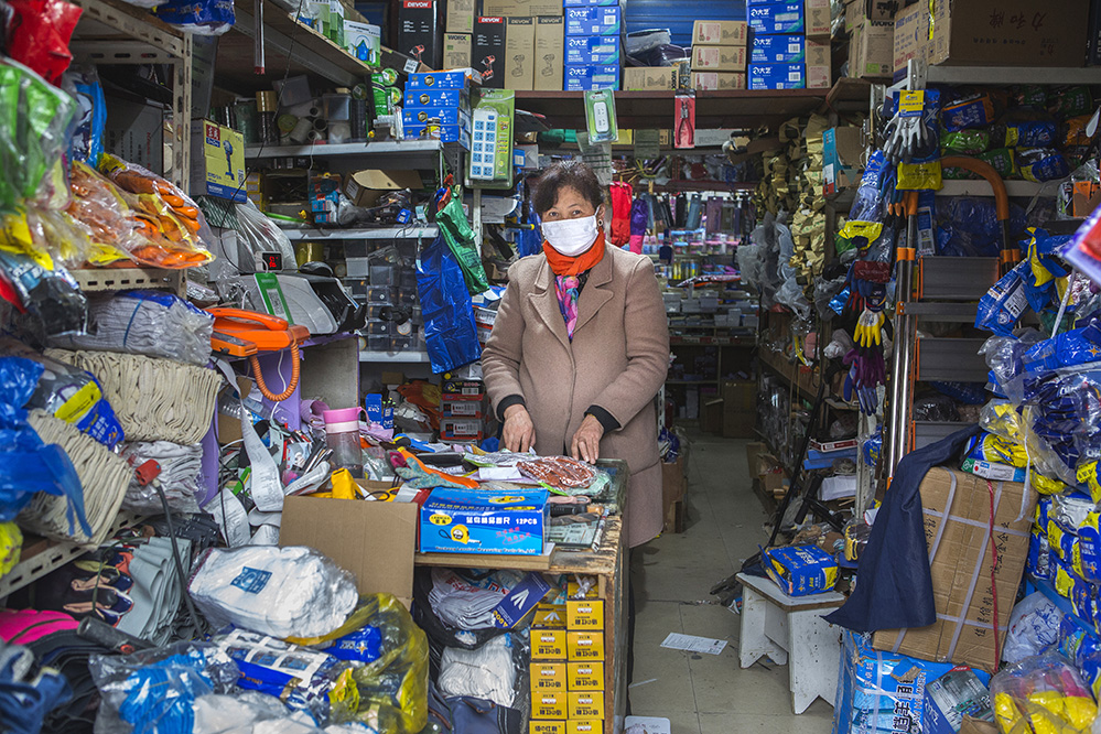 小商販?zhǔn)巧鐣?huì)較底層人員的一種謀生形式,小商品利潤(rùn)低、市場(chǎng)競(jìng)爭(zhēng)激烈,疫情的突然到來(lái)讓他們的生活更加雪上加霜。原本市場(chǎng)內(nèi)每天的人流量超過(guò)5萬(wàn)人次,在這個(gè)特殊的時(shí)期,卻只有商品和他們作伴。只見(jiàn)他們瘦弱的身影幾乎被淹沒(méi)在貨物的海洋里,在他們身上看到生活的不易,感嘆其艱辛。無(wú)論春夏與秋冬,他們始終雷打不動(dòng)地守在那里,因?yàn)槟抢锞褪撬麄冑囈陨娴募摇H欢舱撬麄儯o我們的城市生活增添了一絲不一樣的色彩。