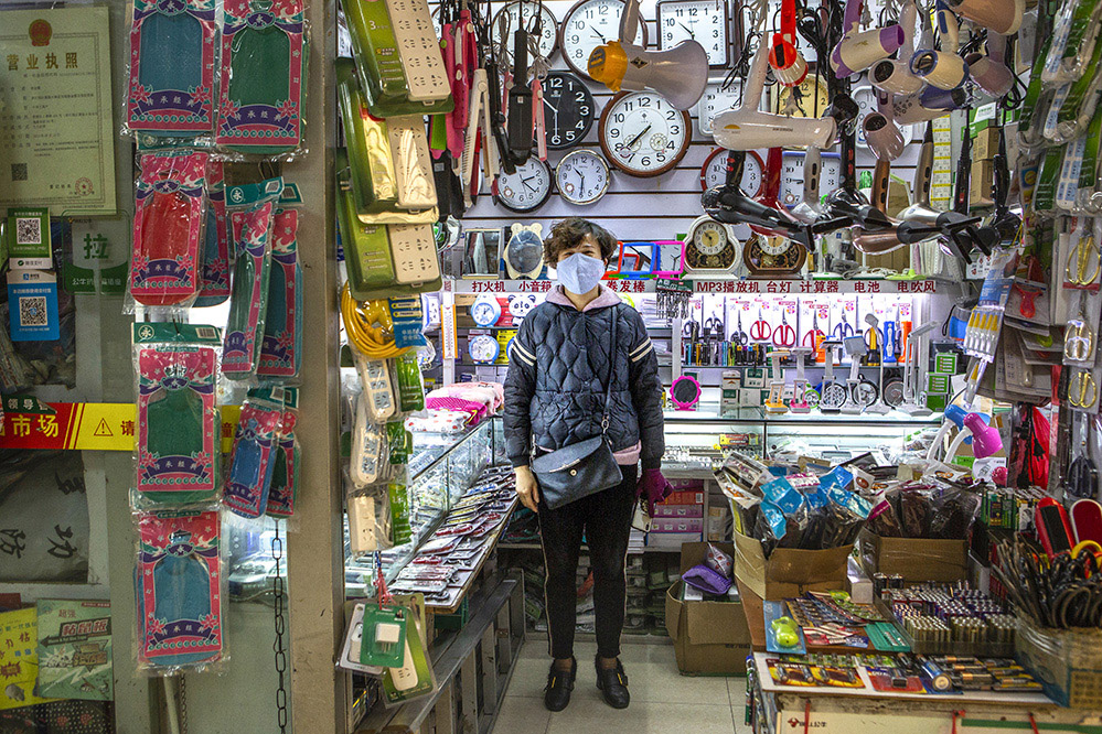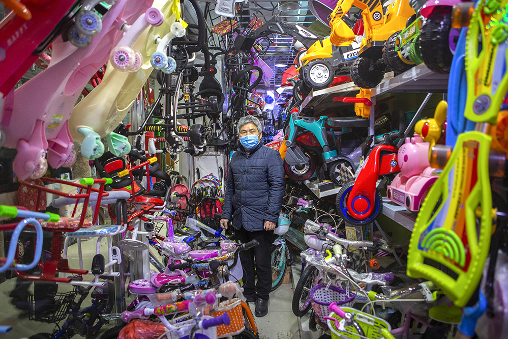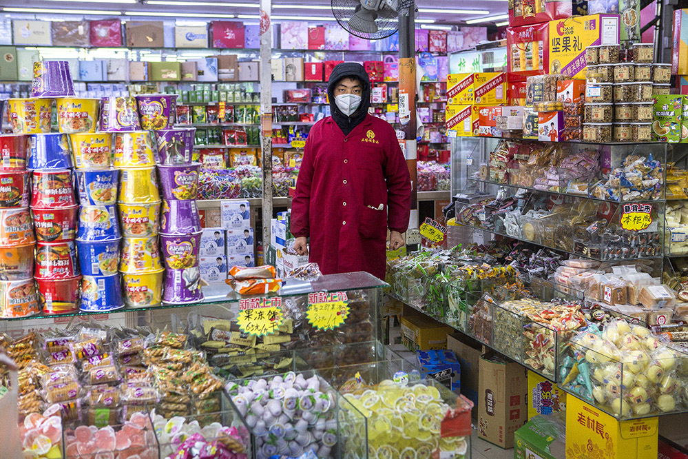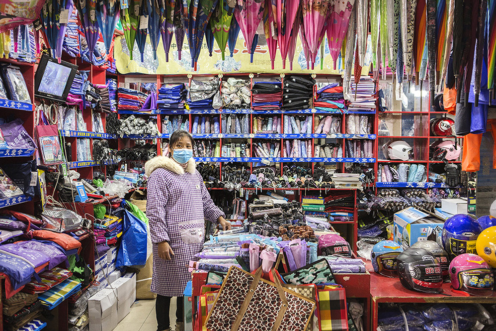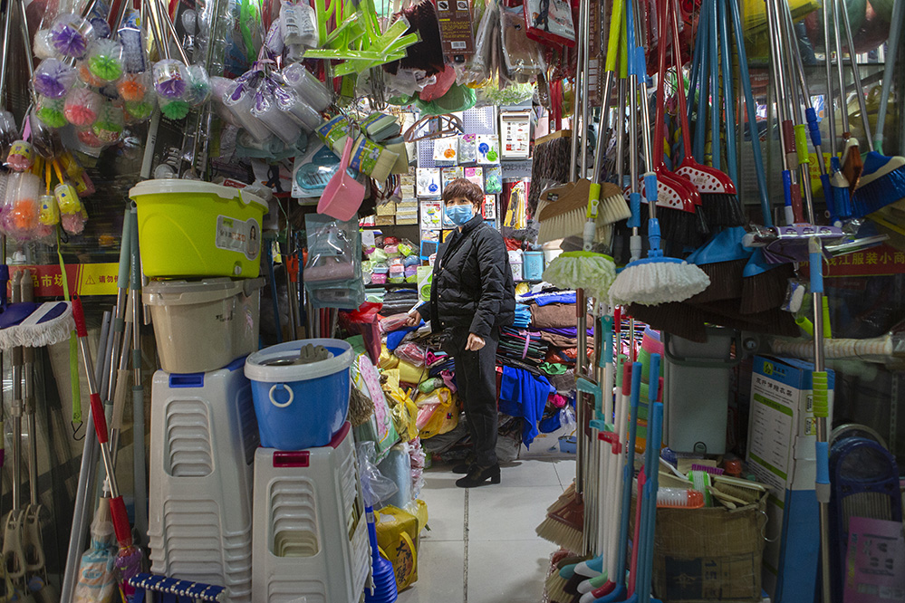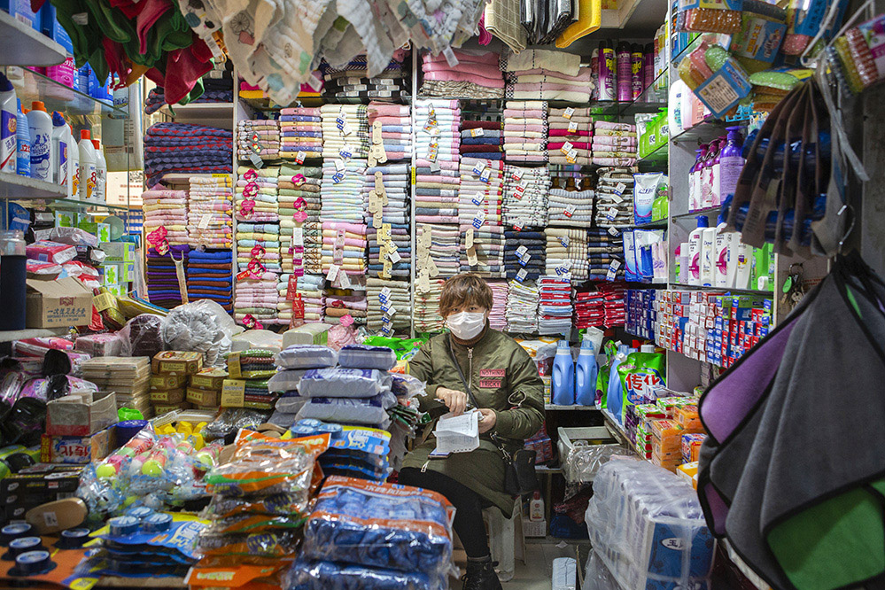 小商販?zhǔn)巧鐣?huì)較底層人員的一種謀生形式,小商品利潤(rùn)低、市場(chǎng)競(jìng)爭(zhēng)激烈,疫情的突然到來(lái)讓他們的生活更加雪上加霜。原本市場(chǎng)內(nèi)每天的人流量超過(guò)5萬(wàn)人次,在這個(gè)特殊的時(shí)期,卻只有商品和他們作伴。只見(jiàn)他們瘦弱的身影幾乎被淹沒(méi)在貨物的海洋里,在他們身上看到生活的不易,感嘆其艱辛。無(wú)論春夏與秋冬,他們始終雷打不動(dòng)地守在那里,因?yàn)槟抢锞褪撬麄冑囈陨娴募摇H欢舱撬麄儯o我們的城市生活增添了一絲不一樣的色彩。