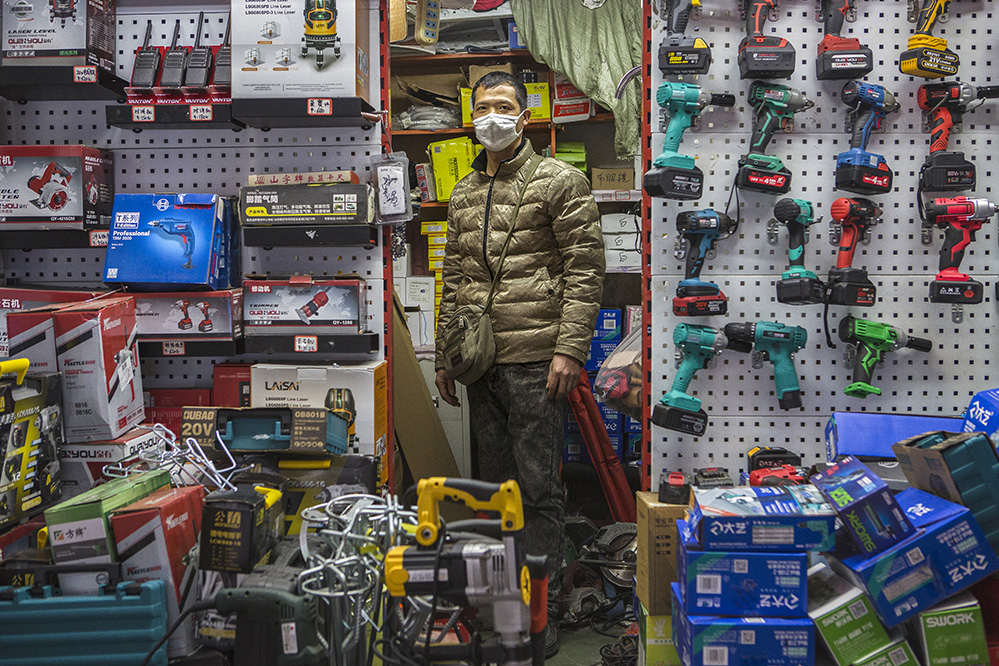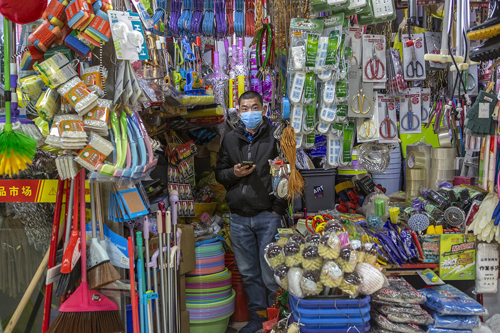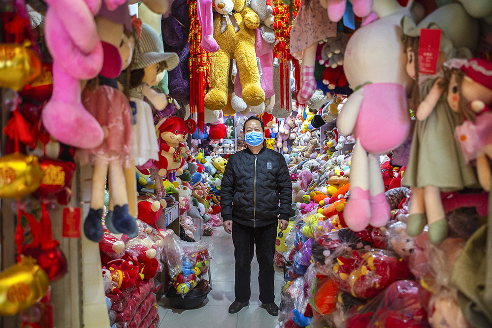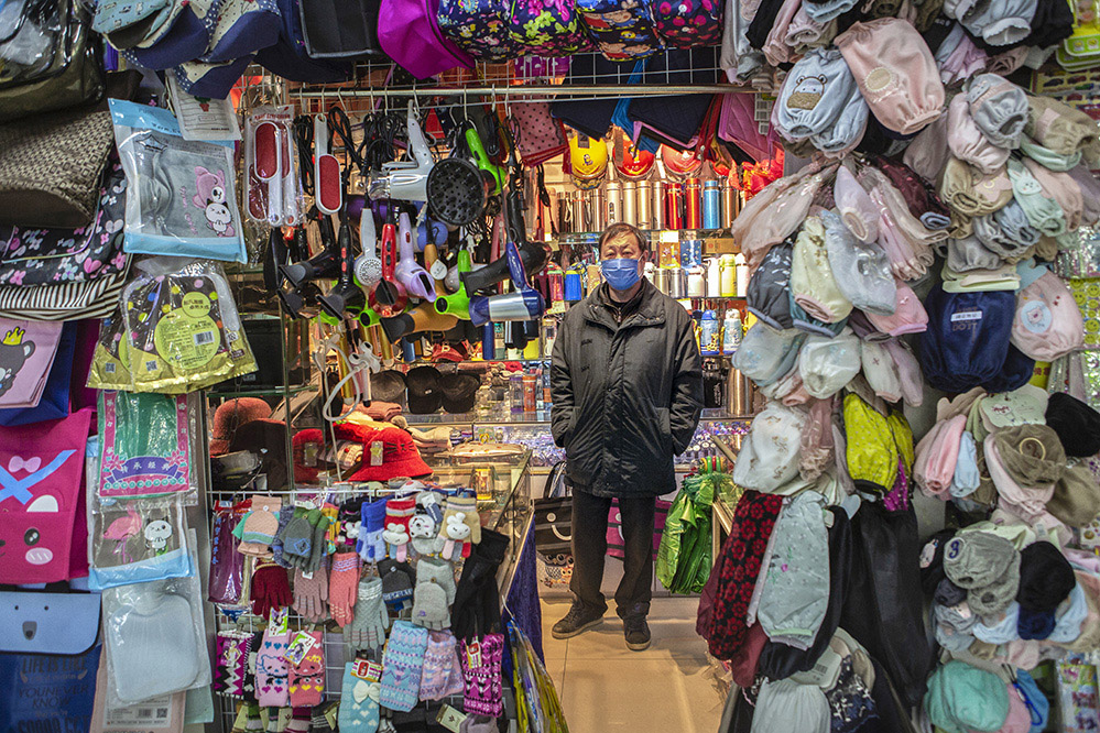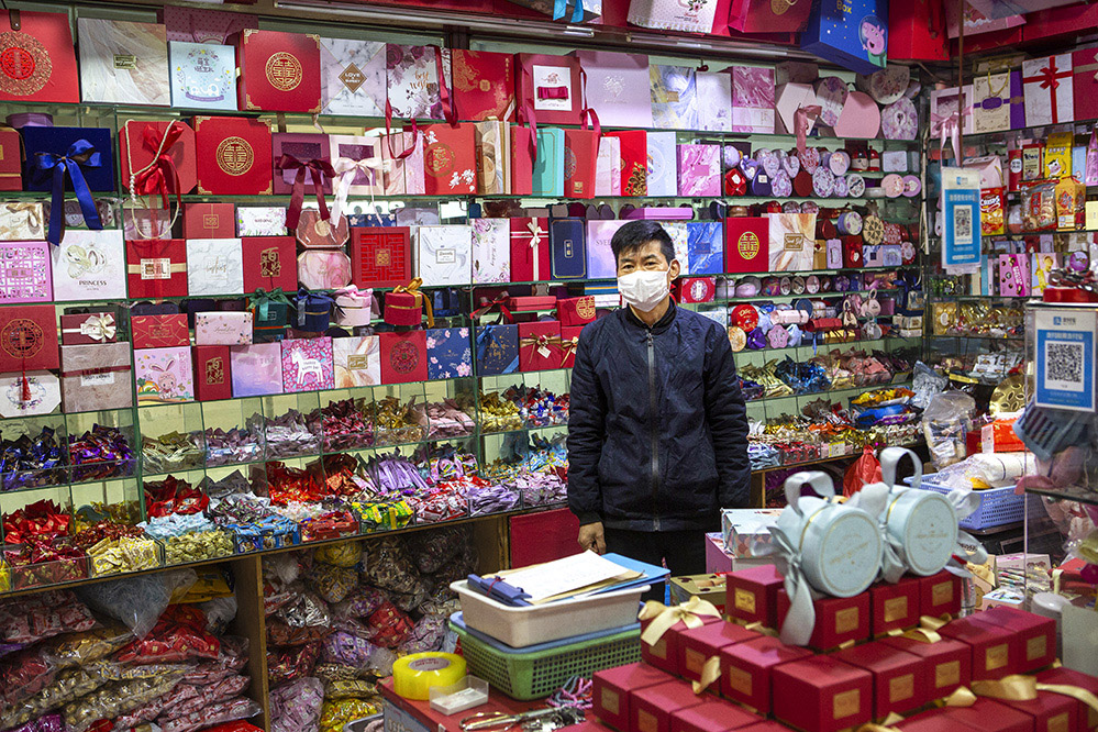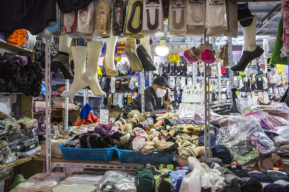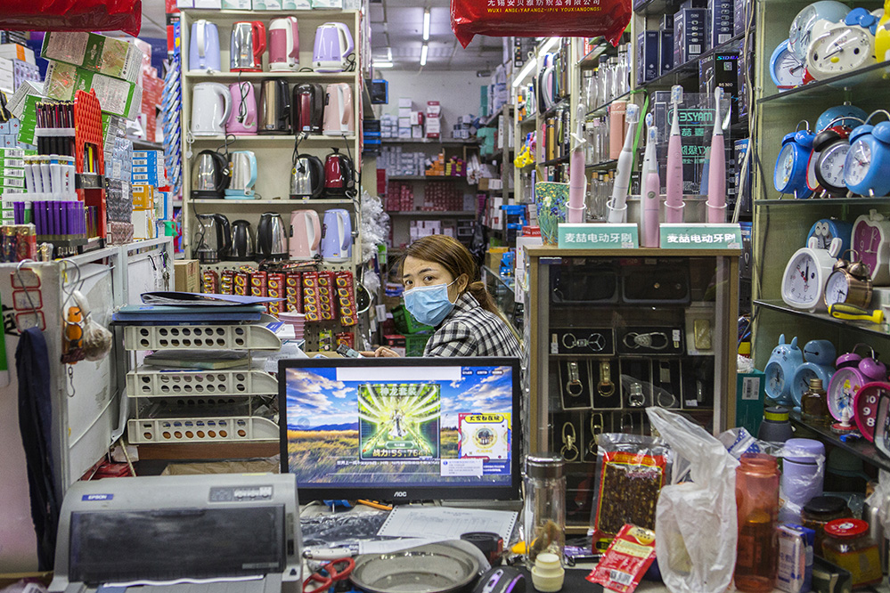 小商販?zhǔn)巧鐣?huì)較底層人員的一種謀生形式,小商品利潤(rùn)低、市場(chǎng)競(jìng)爭(zhēng)激烈,疫情的突然到來(lái)讓他們的生活更加雪上加霜。原本市場(chǎng)內(nèi)每天的人流量超過(guò)5萬(wàn)人次,在這個(gè)特殊的時(shí)期,卻只有商品和他們作伴。只見(jiàn)他們瘦弱的身影幾乎被淹沒(méi)在貨物的海洋里,在他們身上看到生活的不易,感嘆其艱辛。無(wú)論春夏與秋冬,他們始終雷打不動(dòng)地守在那里,因?yàn)槟抢锞褪撬麄冑囈陨娴募摇H欢舱撬麄儯o我們的城市生活增添了一絲不一樣的色彩。