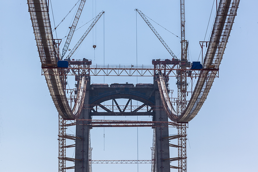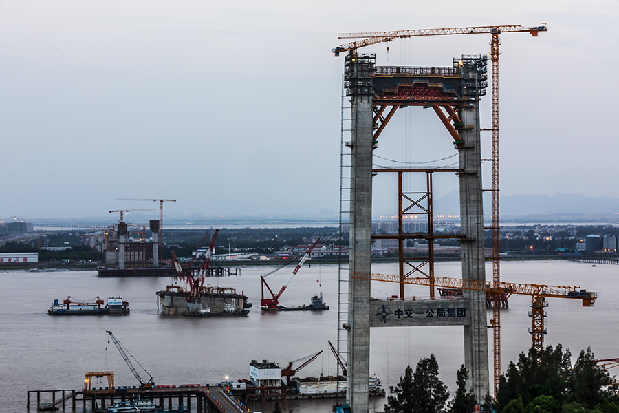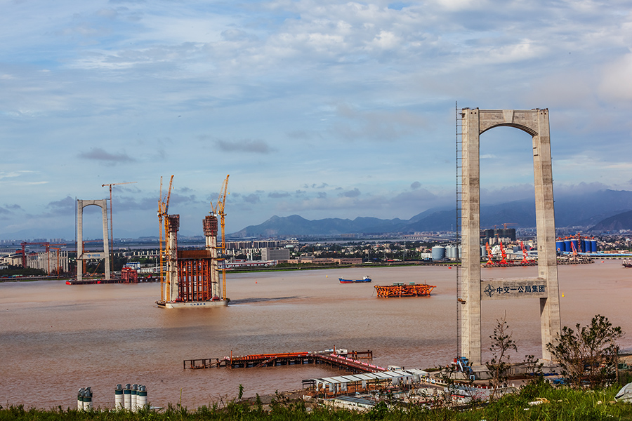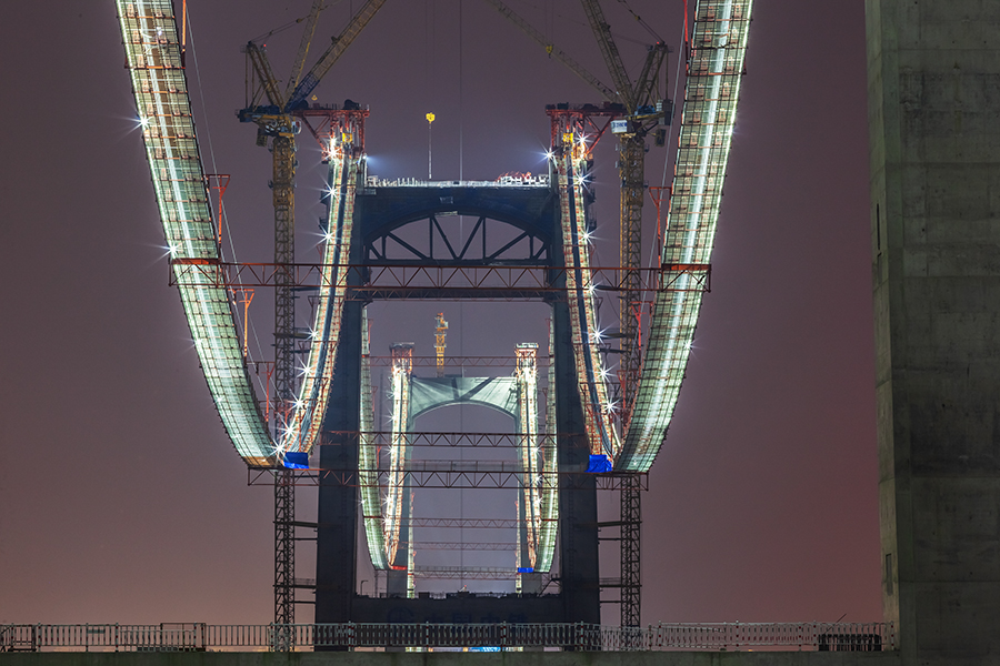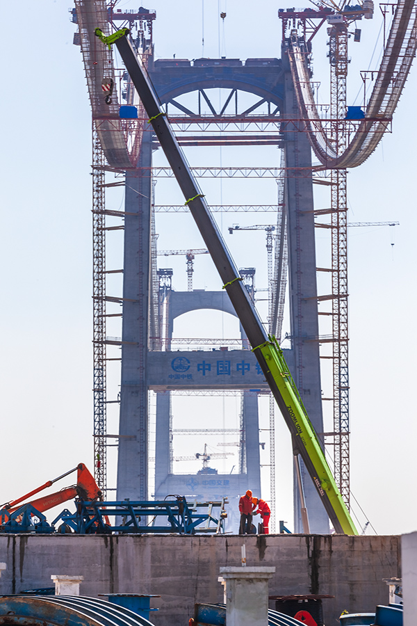 作品介紹: 1、《在建中的溫州甌江北口大橋》拍攝于2017年7月-2021年8月黃華。是世界上首座三塔四跨雙層鋼桁梁懸索橋,北塔即是大橋標(biāo)志性三塔中的一座,建在甌江北岸(樂清黃華),塔身呈H形,高度為137米。甌江北口大橋起于樂清黃華、終于靈昆島,項(xiàng)目于2016年開建,全長約7.9公里,為國內(nèi)首座大跨度高速、國道兩用懸索橋,也是國內(nèi)首次在項(xiàng)目全壽命周期應(yīng)用BIM技術(shù)的橋梁工程。圖片紀(jì)實(shí)了大橋施工過程不同的施工進(jìn)度的蝶變。