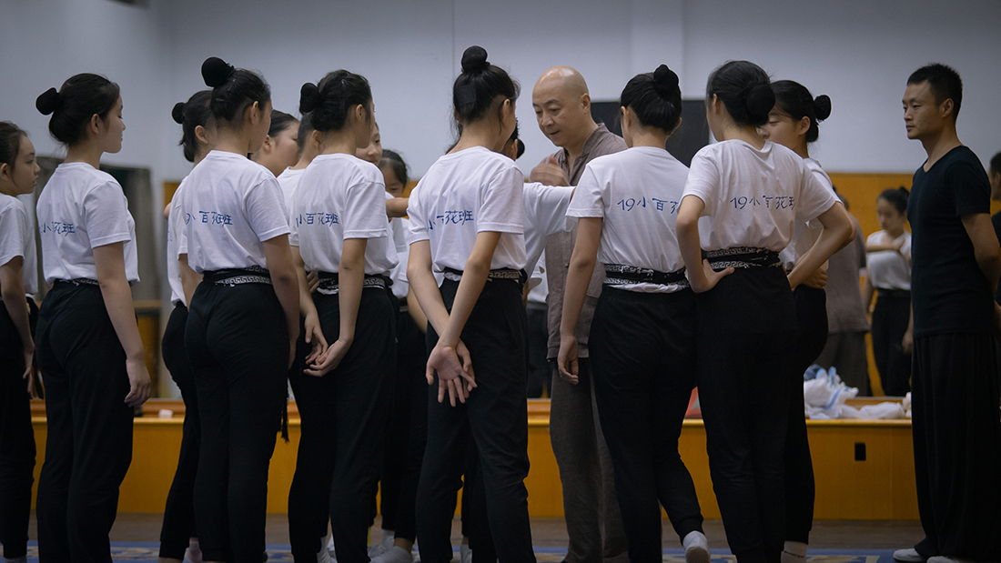 師徒,是中國(guó)傳統(tǒng)文化中形成的一種關(guān)系,是一種身份關(guān)系、社會(huì)關(guān)系,更重要的,這還是一種倫理關(guān)系。除去冗雜的古制師徒關(guān)系,現(xiàn)代師徒制的形成給姐妹倆和每一位學(xué)者帶來(lái)新的感受。“戲比天大”是師傅領(lǐng)進(jìn)門(mén)的第一課,基訓(xùn)課時(shí)每一聲鼓點(diǎn),每一個(gè)節(jié)拍都是師傅對(duì)她們的諄諄教誨。“兒行千里母擔(dān)憂(yōu)”小百花班37朵小花離開(kāi)了家人遠(yuǎn)赴杭州求學(xué),思鄉(xiāng)之情總在節(jié)日時(shí)愈顯濃烈,“一日為師,終身為父”平日里嚴(yán)厲的老師更像家人陪伴在小花身邊,緩解她們的思鄉(xiāng)之情。