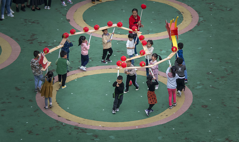 返回頂部>> 照片說(shuō)明: 在開(kāi)放課上,小朋友在舞板登龍。拍攝時(shí)間2020-10-28)