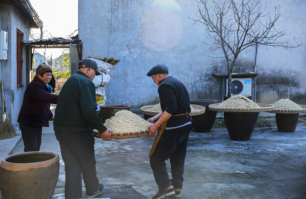 “春節(jié)還沒(méi)到,我們已釀過(guò)5次糯米酒,缸里的酒經(jīng)過(guò)一星期的發(fā)酵,就有酒香味了!”朱大伯告訴記者,釀酒需氣候、溫度適宜,太冷了會(huì)影響酒糟發(fā)酵,眼下這個(gè)時(shí)節(jié)正好。